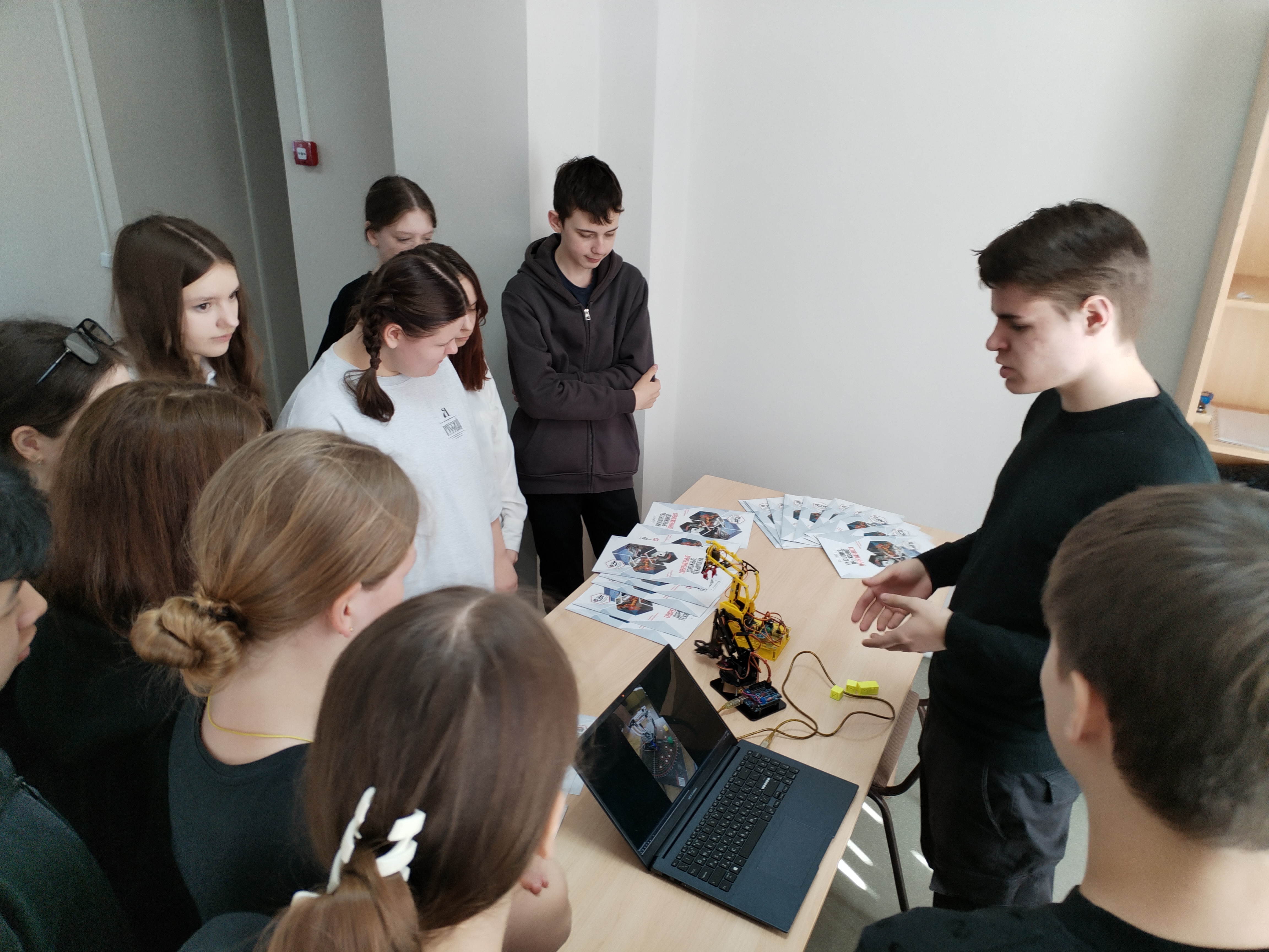 Кроме того, учащиеся «Гагаринских классов» узнали о работе Студенческого конструкторского бюро «Строительные и дорожные машины», инновационных проектах в области подъемно-транспортного, строительного и дорожного машиностроения, в разработке которых принимают активное участие студенты Политеха. Учащимся продемонстрировали работу автоматизированной системы и мобильных роботов-манипуляторов, а также комплексную дорожную лабораторию «Трасса».