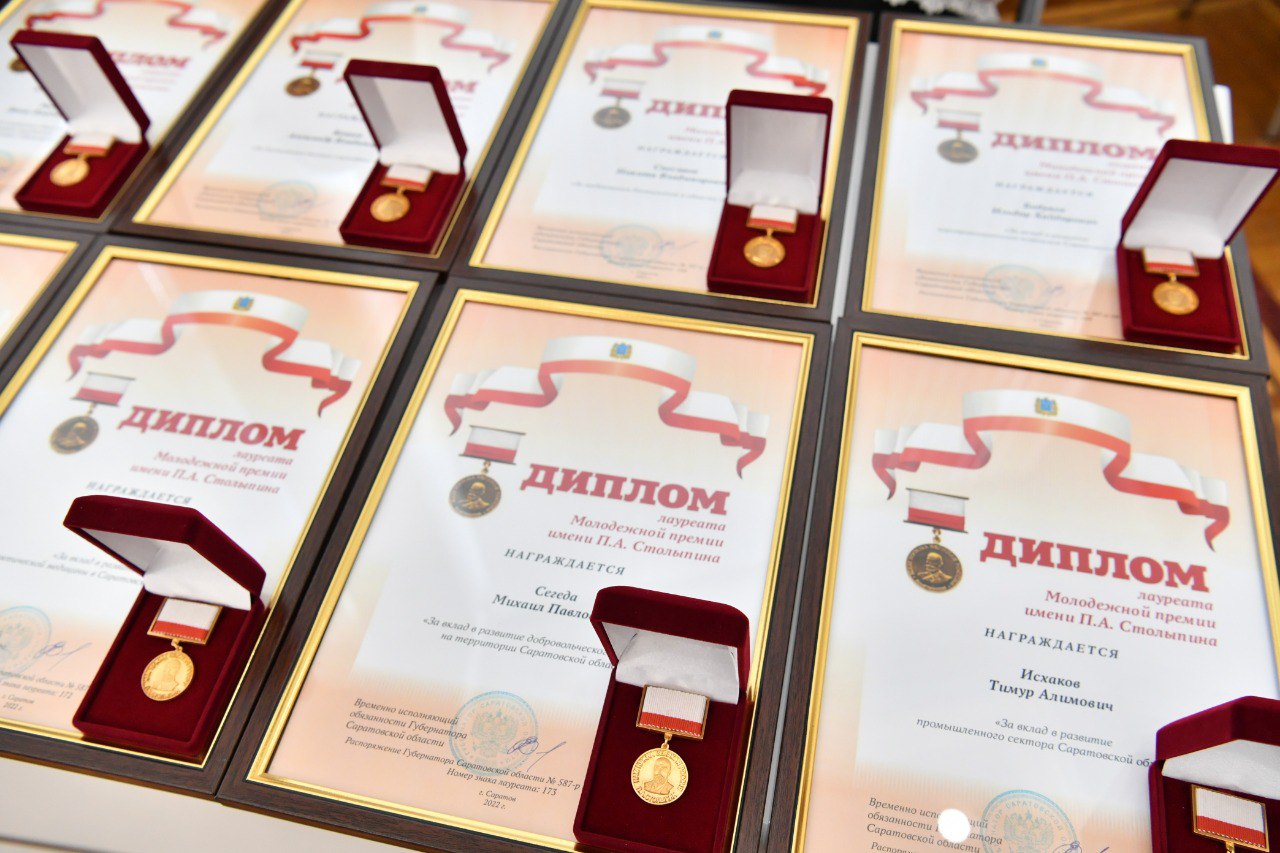 Молодежная премия имени П.А.Столыпина – высший знак отличия заслуг соискателя в различных сферах социально-экономической жизни области, учреждена постановлением Губернатора Саратовской области.