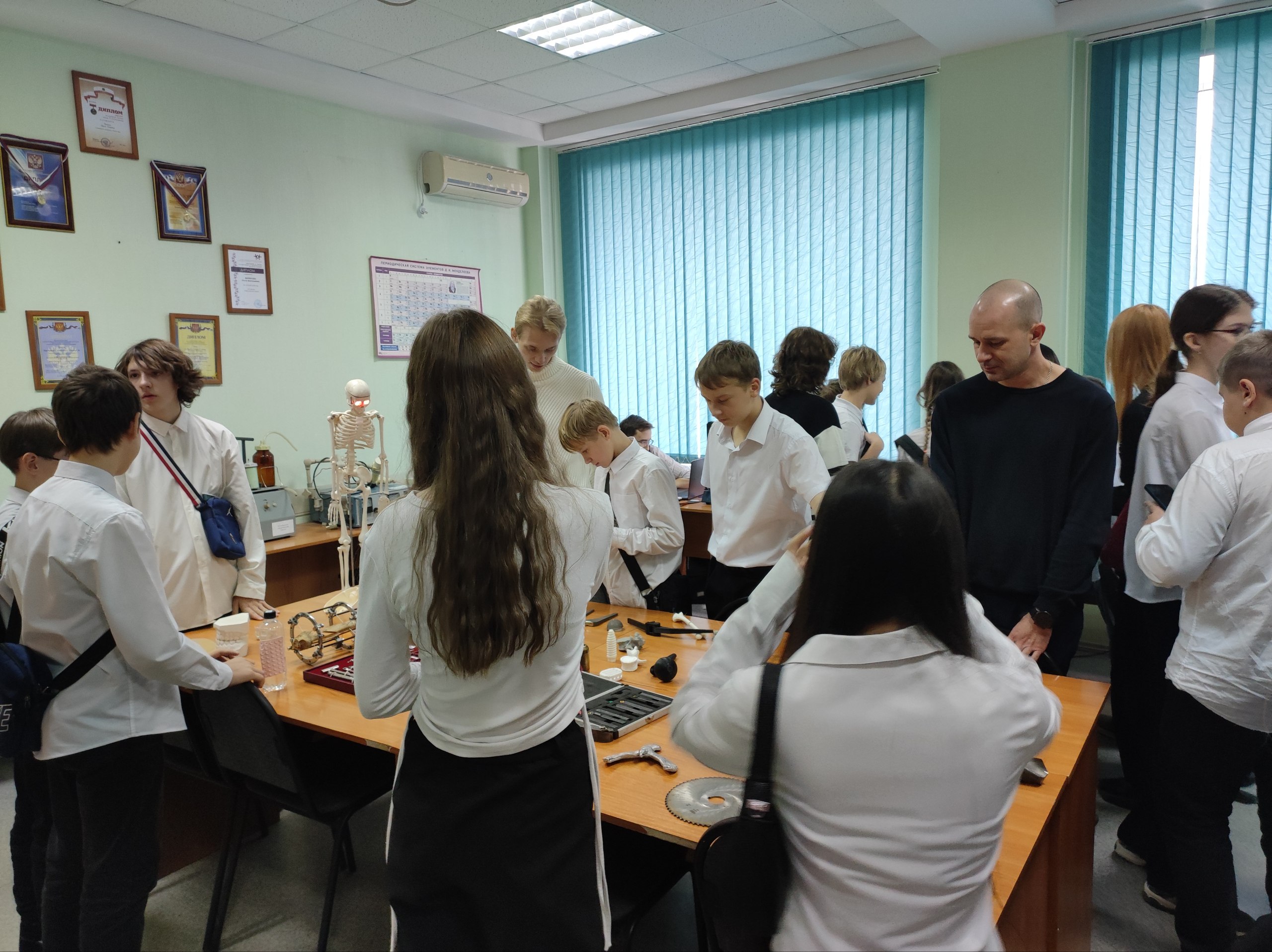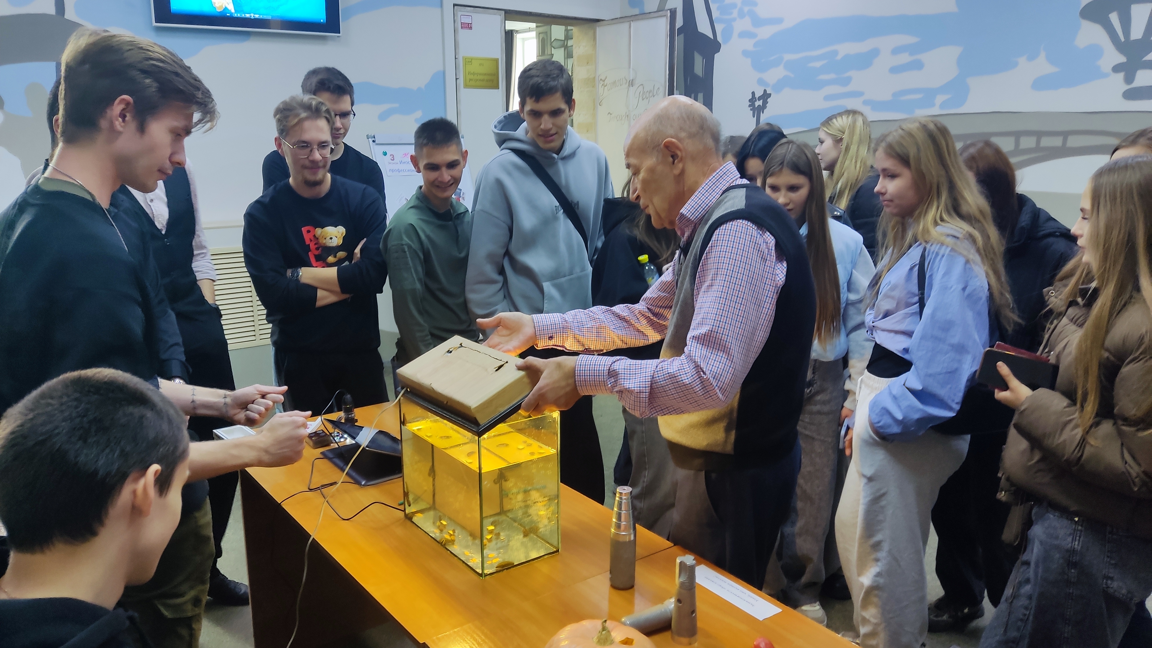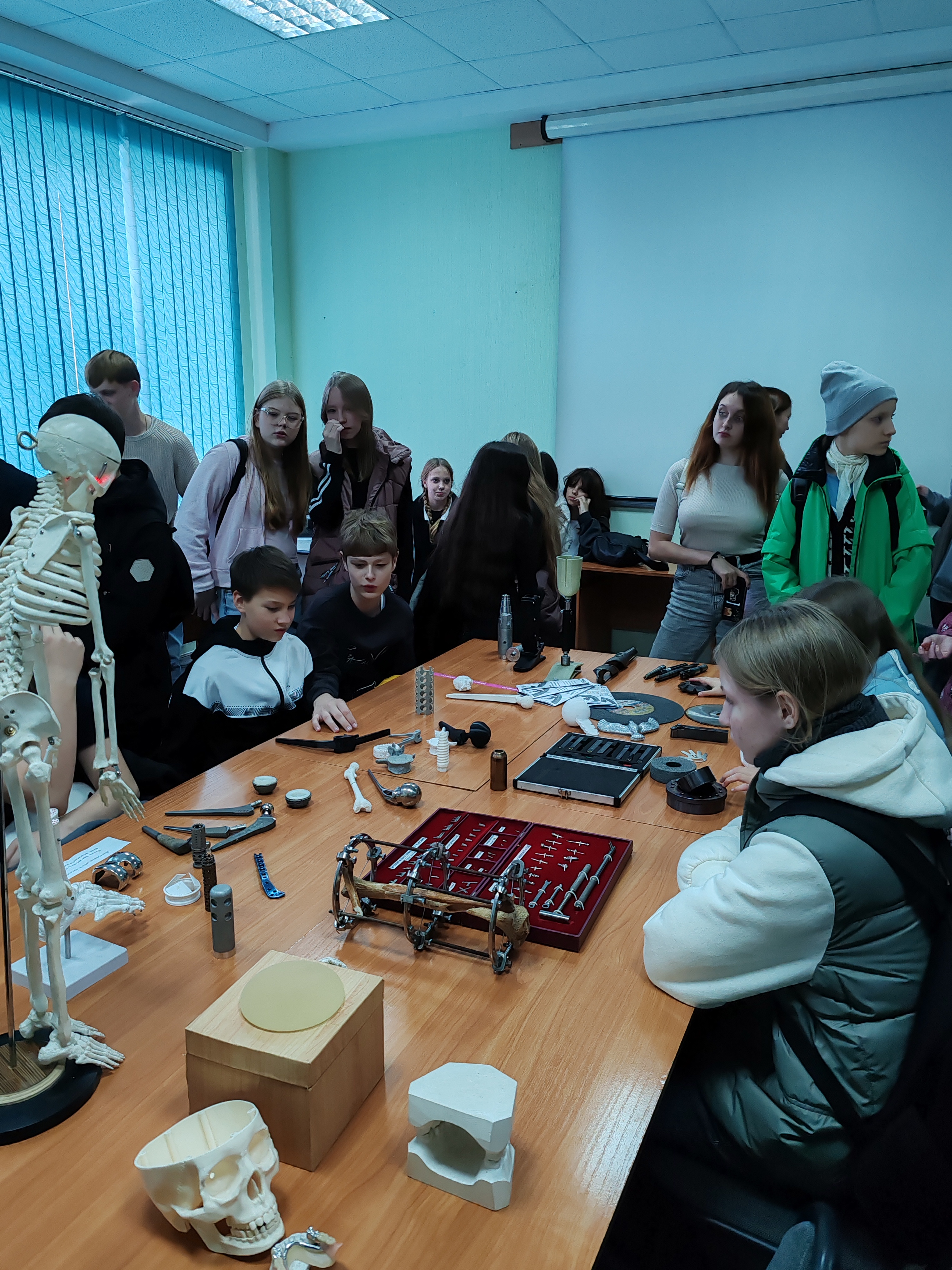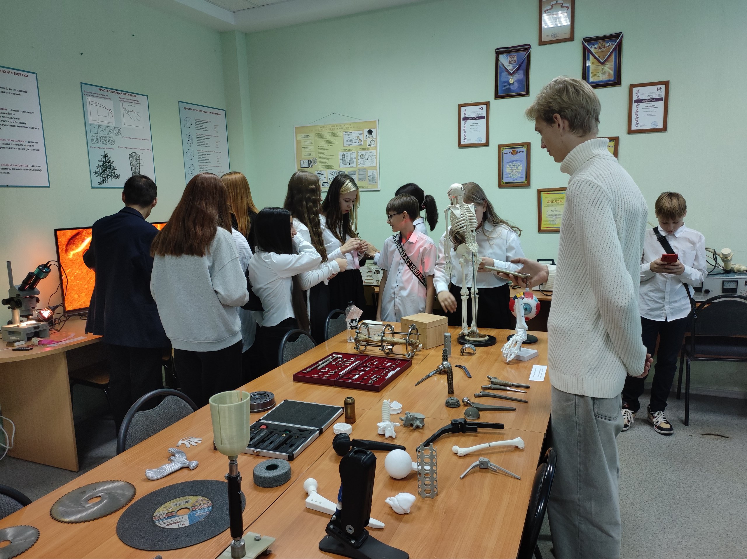 Часть экспозиции располагалась в фойе Института машиностроения, материаловедения и транспорта. Сотрудники кафедры и студенты-выпускники группы б-БИСТ-41 продемонстрировали школьникам работу медицинской техники. Гости фестиваля смогли лично управлять медицинским эндоскопом, узнать о принципах работы световодов и даже пообщаться с живыми «лекарями» – медицинскими пиявками, о чьих свойствах захватывающе рассказывал профессор Сергей Пичхидзе.