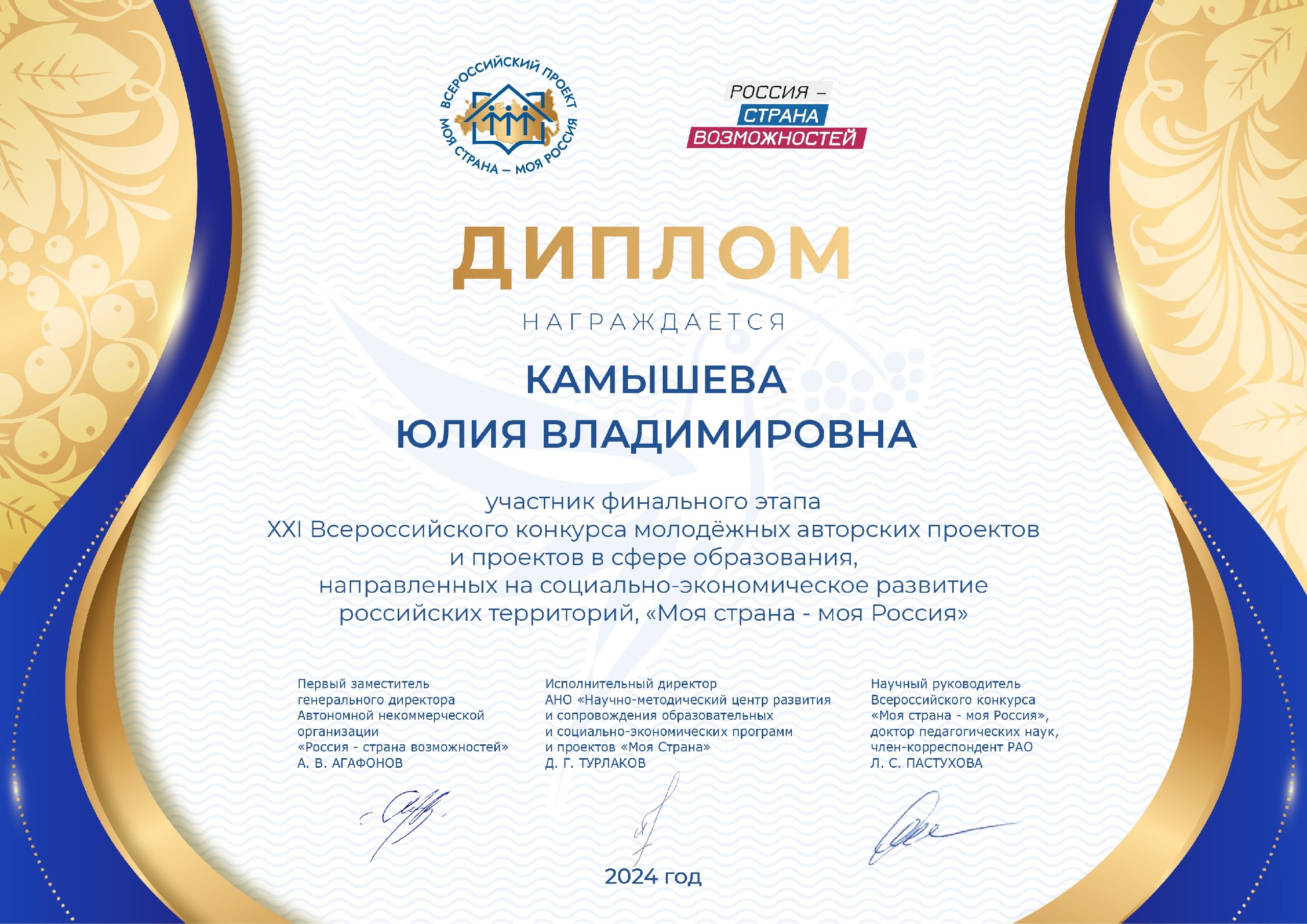 Проект Юлии Камышевой вошел в Топ-12 финалистов из более 1700 заявок со всей страны в номинации «Большая технологическая разведка моей страны», направленных на исследование, разработку и внедрение научно-исследовательских и опытно-конструкторских разработок для различных сфер деятельности.