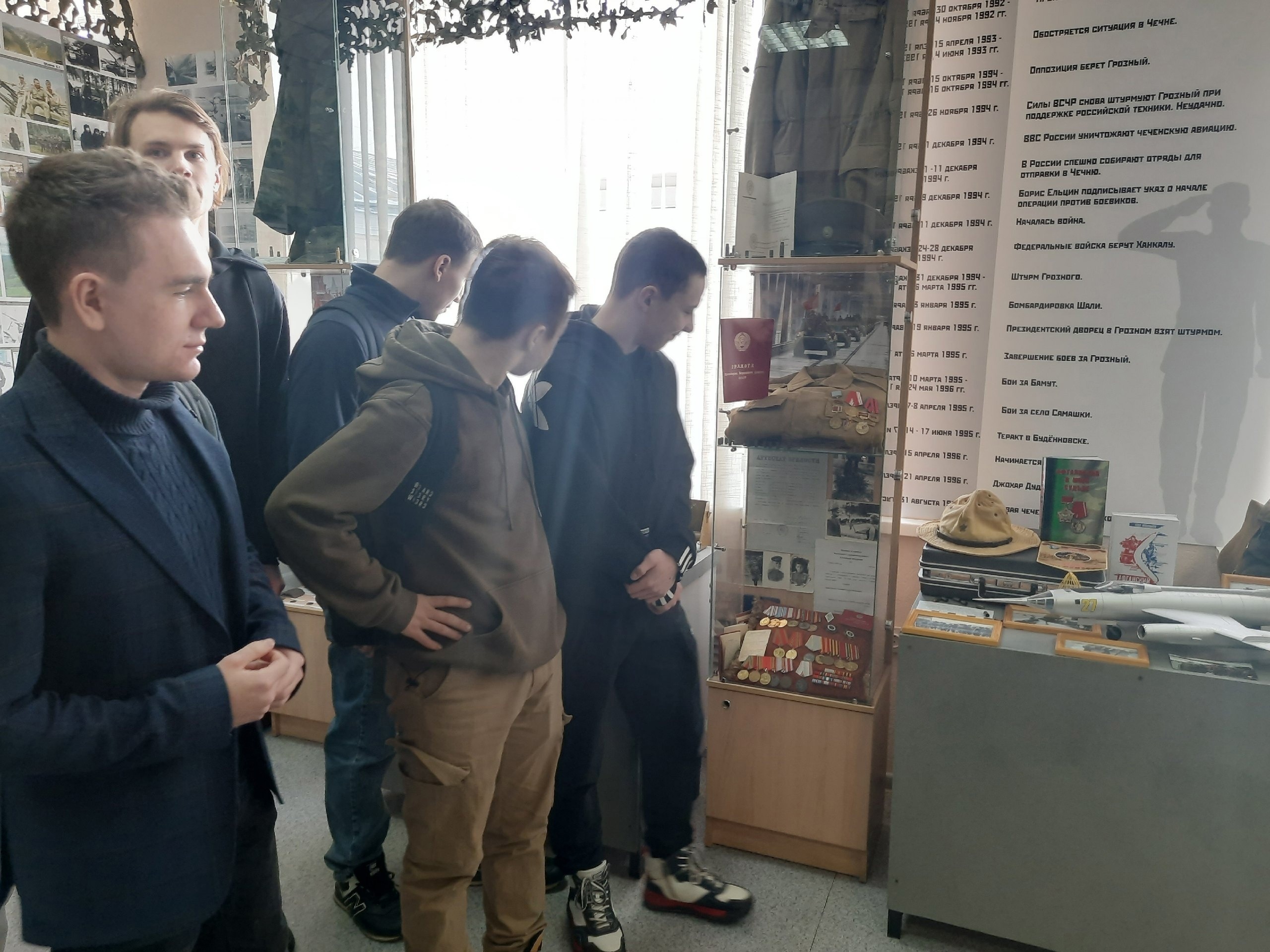 Студенты первого курса Института машиностроения, материаловедения и транспорта СГТУ имени Гагарина Ю.А. посетили Музей воинской и боевой славы имени С.И. Тимакова технического университета. Здесь представлена богатая коллекция экспонатов, посвященных истории боевых действий и подвигам солдат  работников и студентов вуза разных лет.