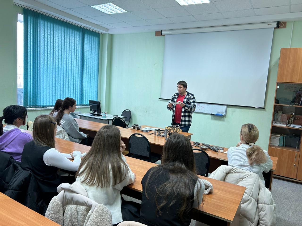 Сотрудники кафедры МБИ профессор Пичхидзе Сергей Яковлевич и старший преподаватель Телегин Сергей Владимирович в рамках профориентационной программы «В гостях у СГТУ» встретились со школьниками МОУ «СОШ № 77». Ученикам представили основные направления обучения в Институте машиностроения, материаловедения и транспорта, рассказали про будущие перспективы трудоустройства. Особый интерес у школьников вызвали продемонстрированные наглядные материалы такие, как внутрикостные имплантаты различного назначения, металлообрабатывающие инструменты, изделия аддитивного производства. Также сотрудники кафедры раскали про процесс обучения и прохождения практик, про лаборатории института, возможности самореализации в области науки, спорта и творчества.