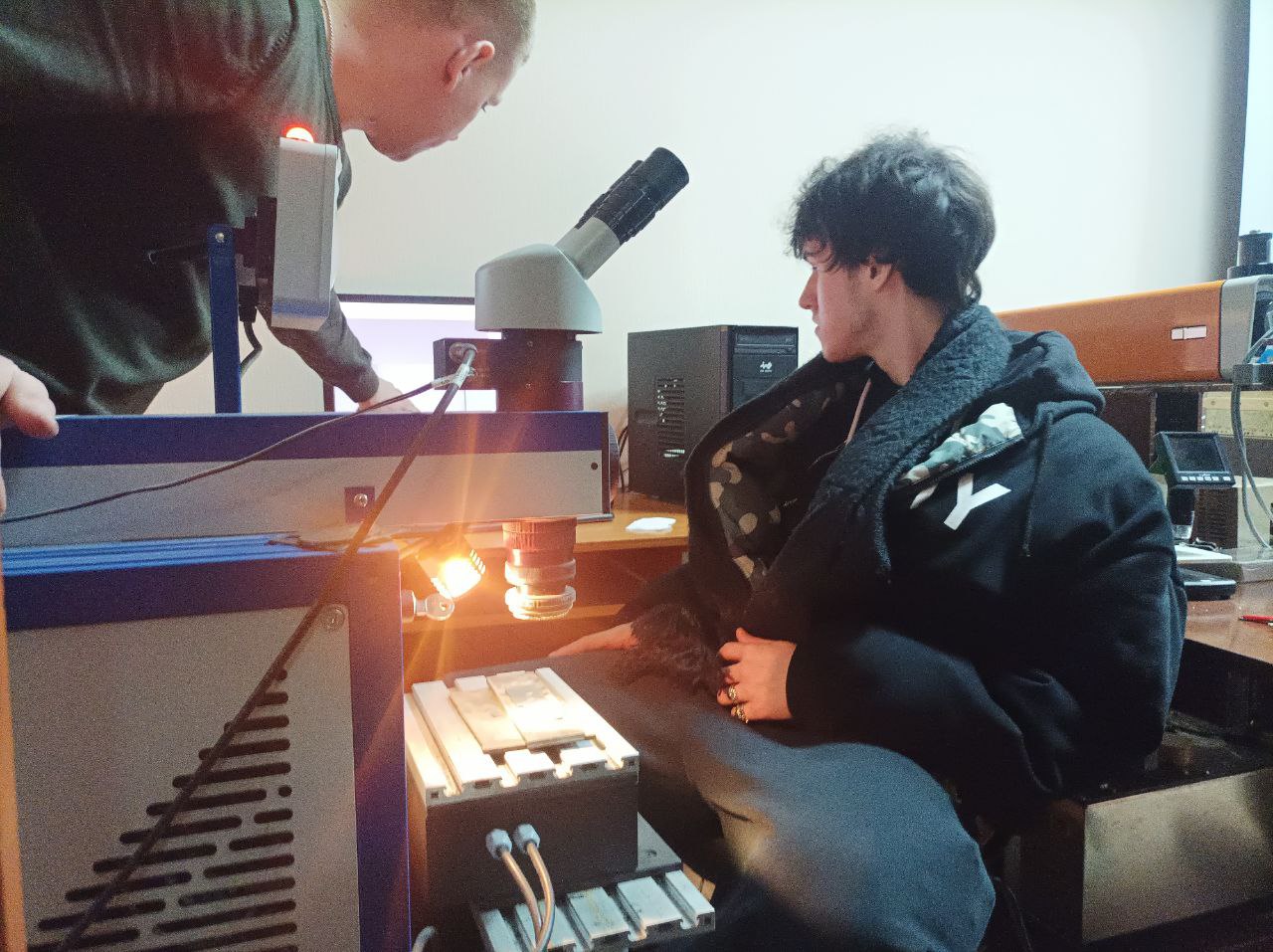 Студенты старших курсов кафедры СМ познакомили школьников с лазерной установкой, предназначенной для проведения процессов лазерной резки, сварки, наплавки, гравировки и маркировки изделий из разных материалов и широкого спектра назначения. А также гости с большим удовольствием поработали на оборудовании для проведения контактной сварки, «попробовали свои силы» на сварочном дуговом малоамперном тренажёре; познакомились с работой оборудования ультразвуковой очистки, тепловизора и электроискрового карандаша.