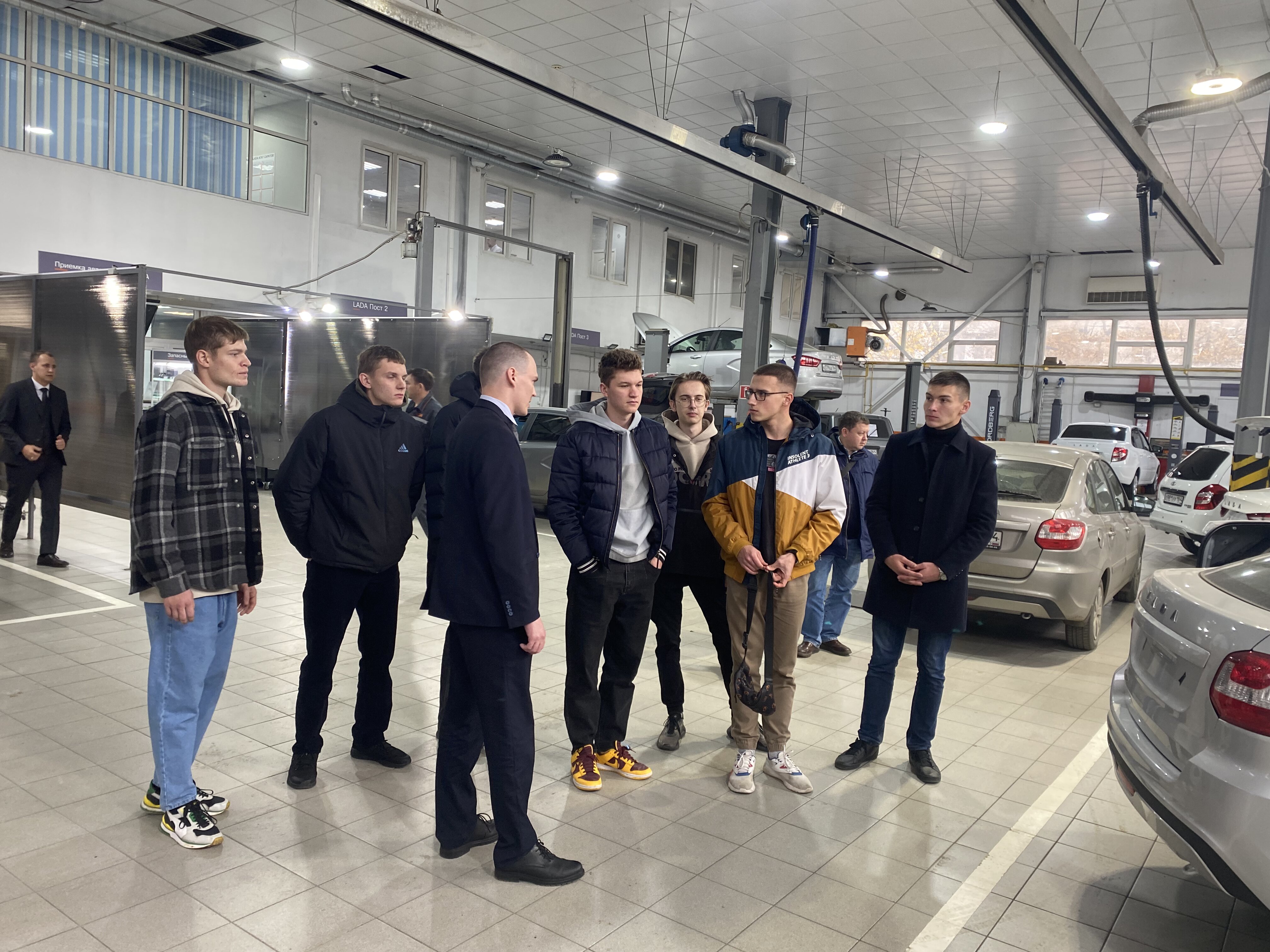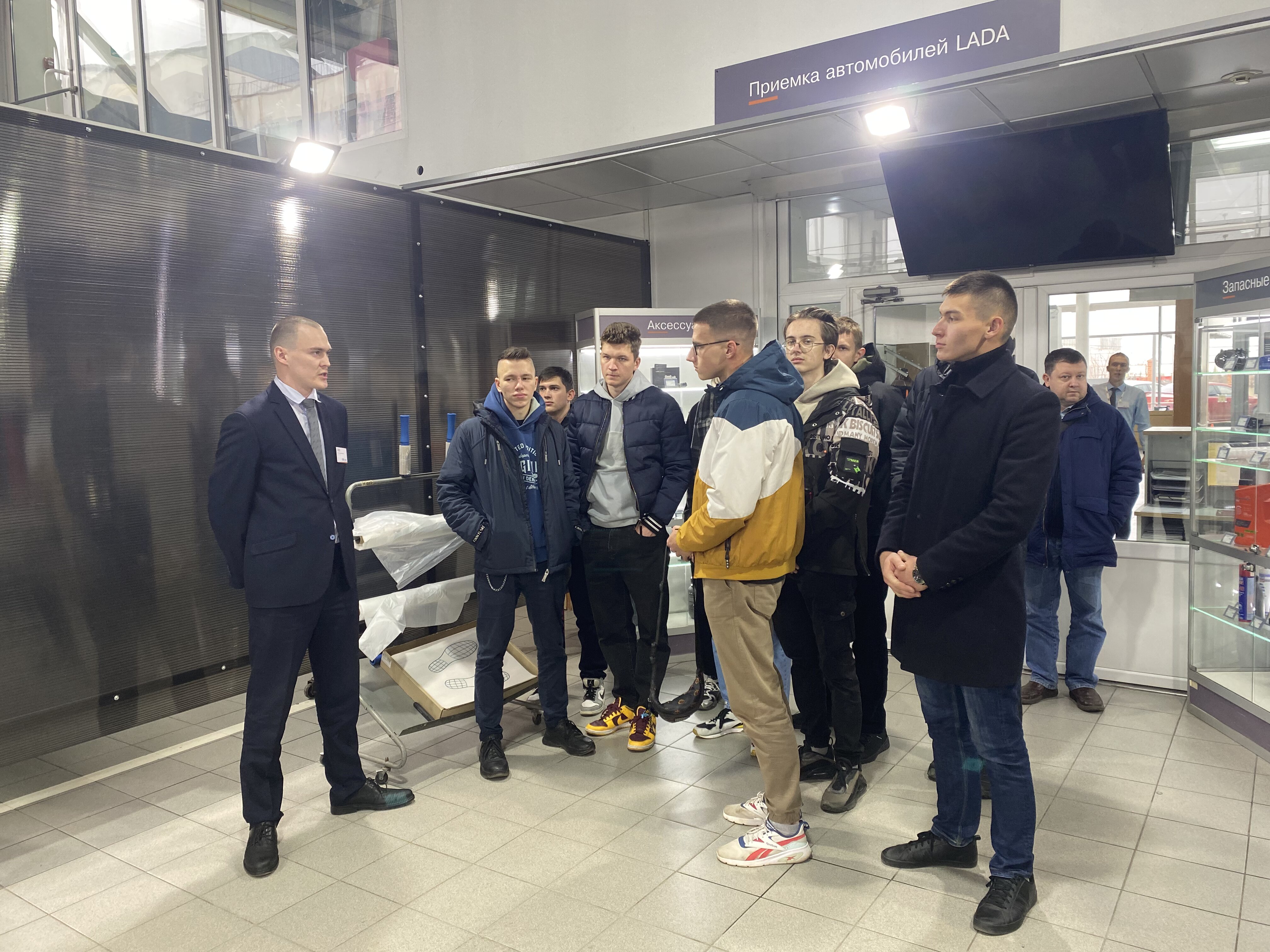 Экскурсию провел заместитель директора дилерского центра Тимофей Сыпченко. Студенты познакомились с марками и комплектациями отечественных автомобилей ЛАДА, реализуемых дилерским центром.