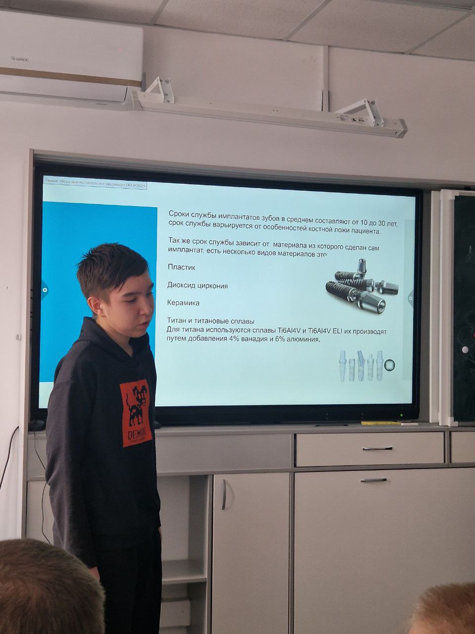• Разработка стоматологического имплантата с памятью формы (руководитель - старший преподаватель кафедры МБИ Сергей Телегин).