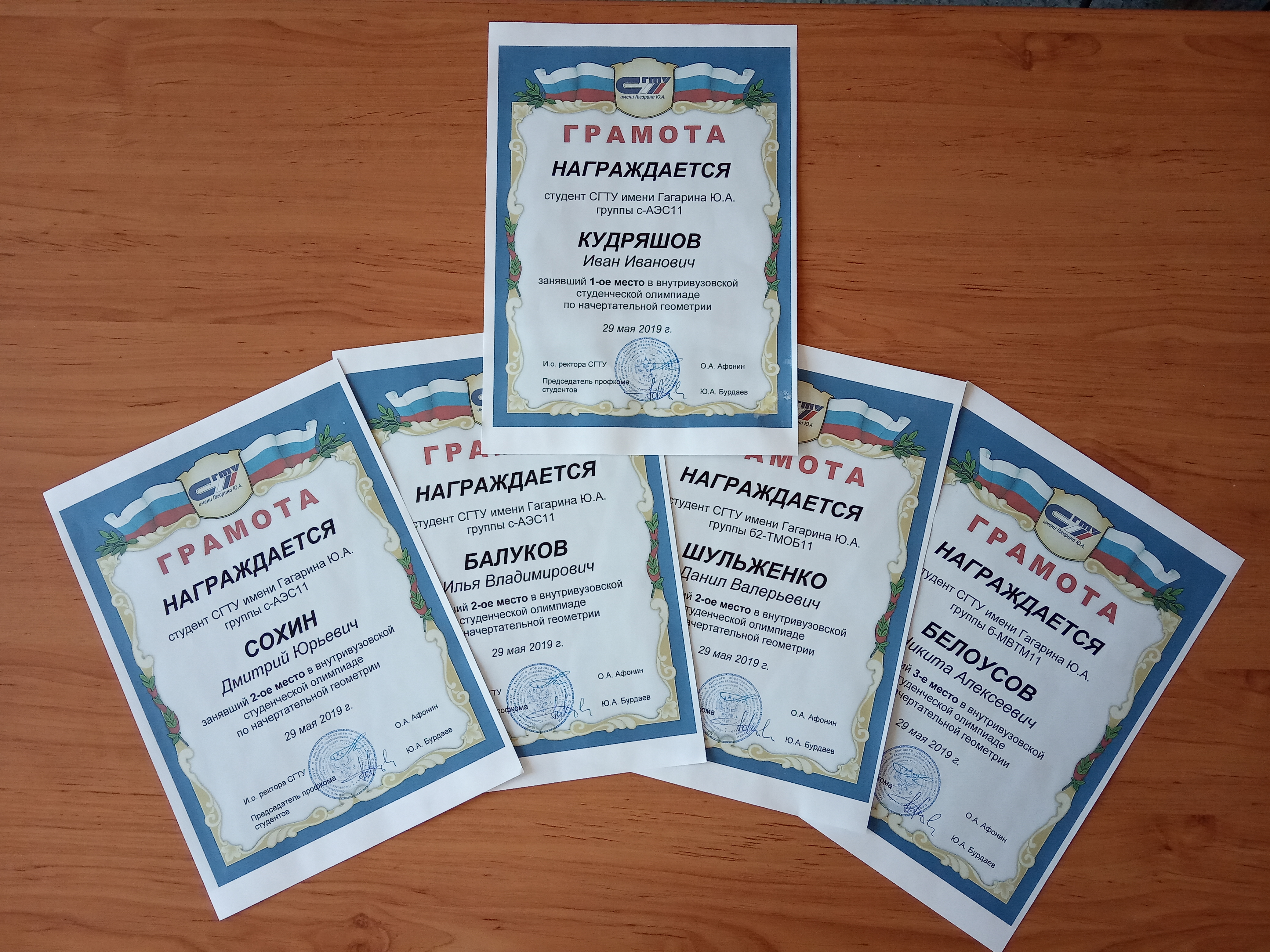 Жюри подвело итоги олимпиады по дисциплине «Начертательная геометрия», проводившейся на кафедре «Инженерная геометрия и основы САПР» 29 мая 2019г. В олимпиаде приняли участие около 90 студентов (ИнЭТС, ИнЭТМ, УРБАС).