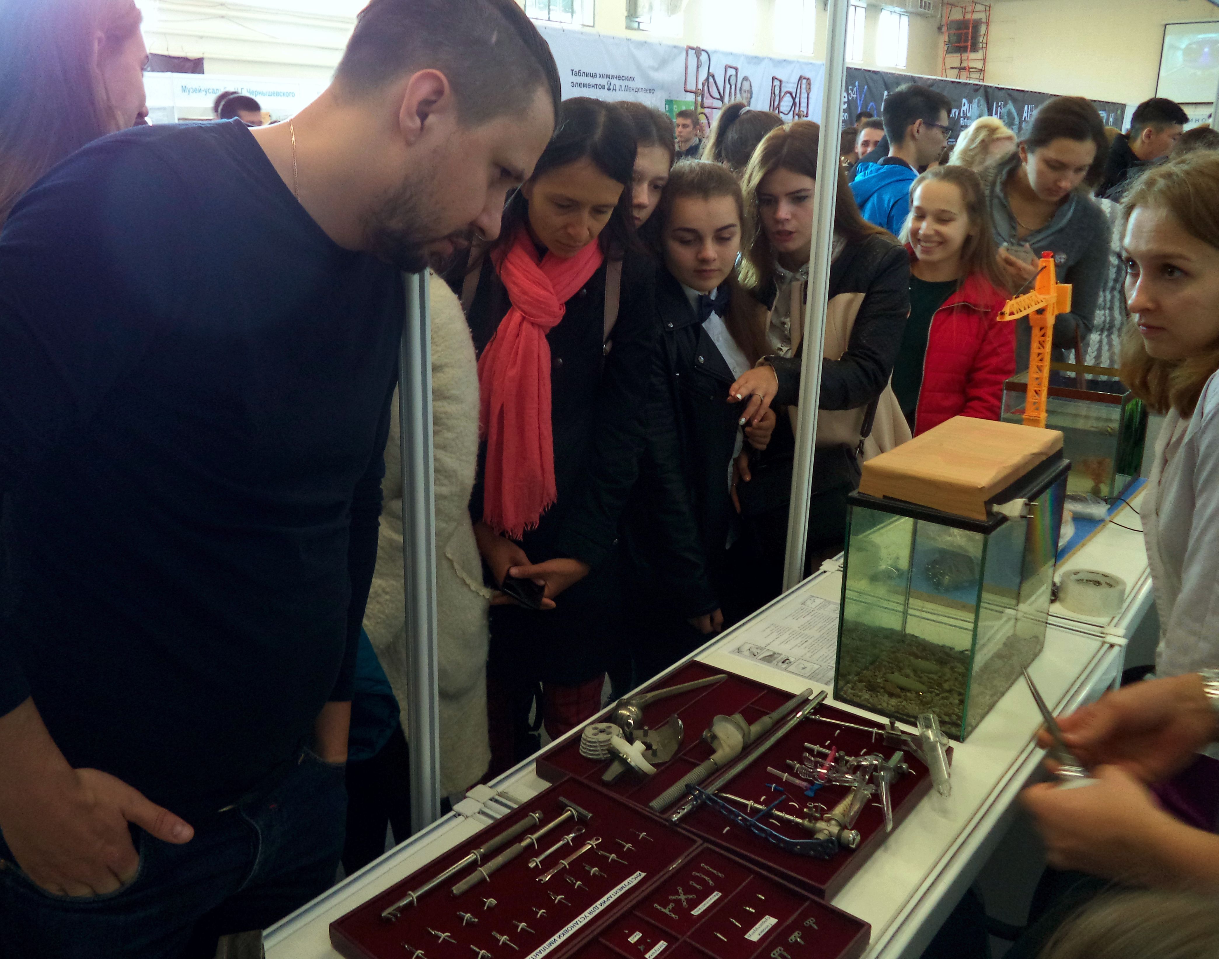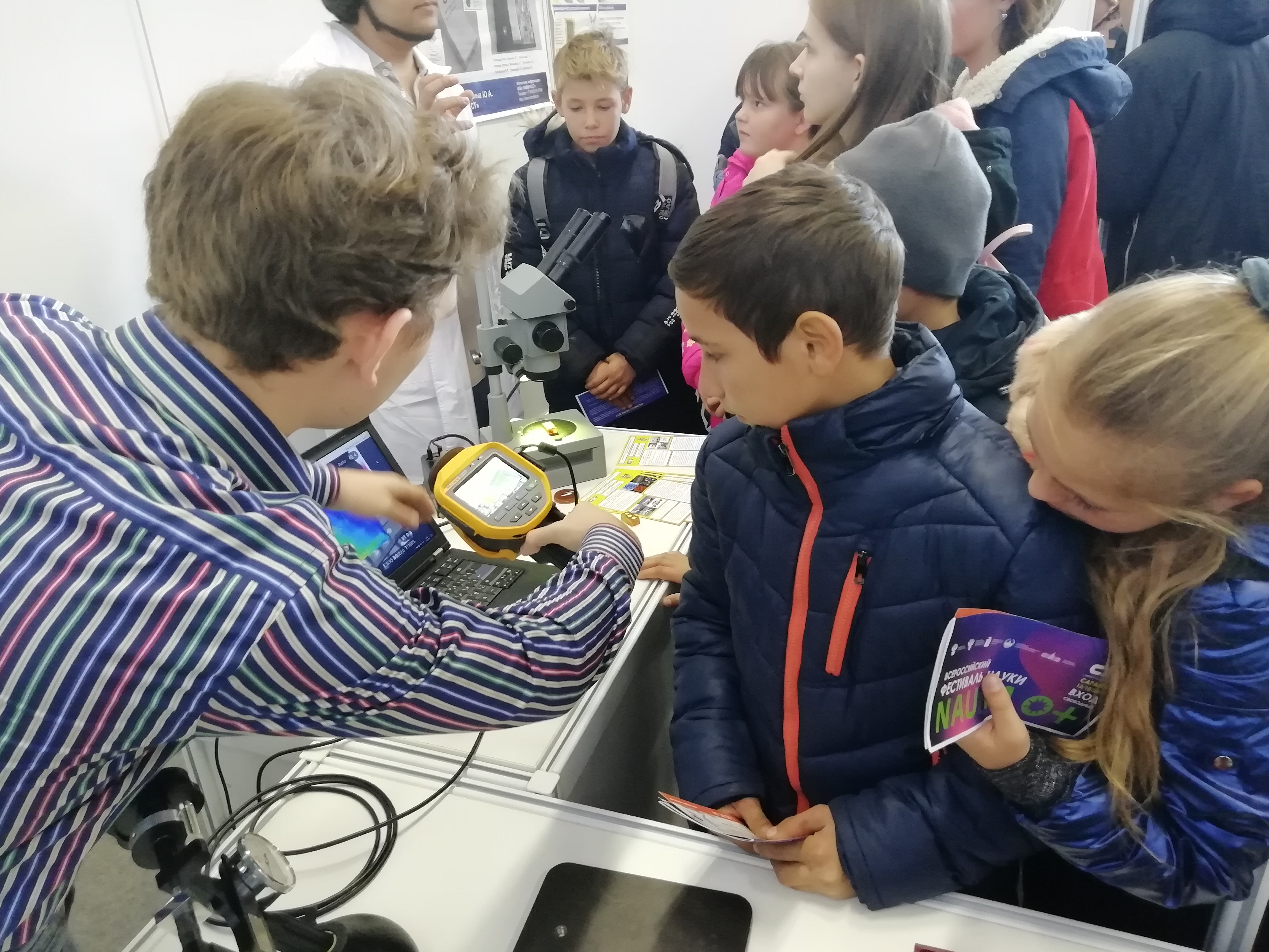 Особое внимание на экспозиции было уделено приборам для изучения свойств материалов различного назначения. Все желающие могли изучить структуру материалов с помощью оптического микроскопа, а так же измерить твердость материалов при помощи твердомера. Также неподдельный интерес вызвал тепловизор, благодаря которому посетители смогли провести мини-эксперимент и установить скорость нагревания и охлаждения металлических пластин. Посетителей фестиваля привлек стенд, посвященный гирудотерапии. Школьники могли вживую наблюдать за медицинскими пиявками, а также узнали много нового об изготовлении лекарственных препаратов на их основе.
