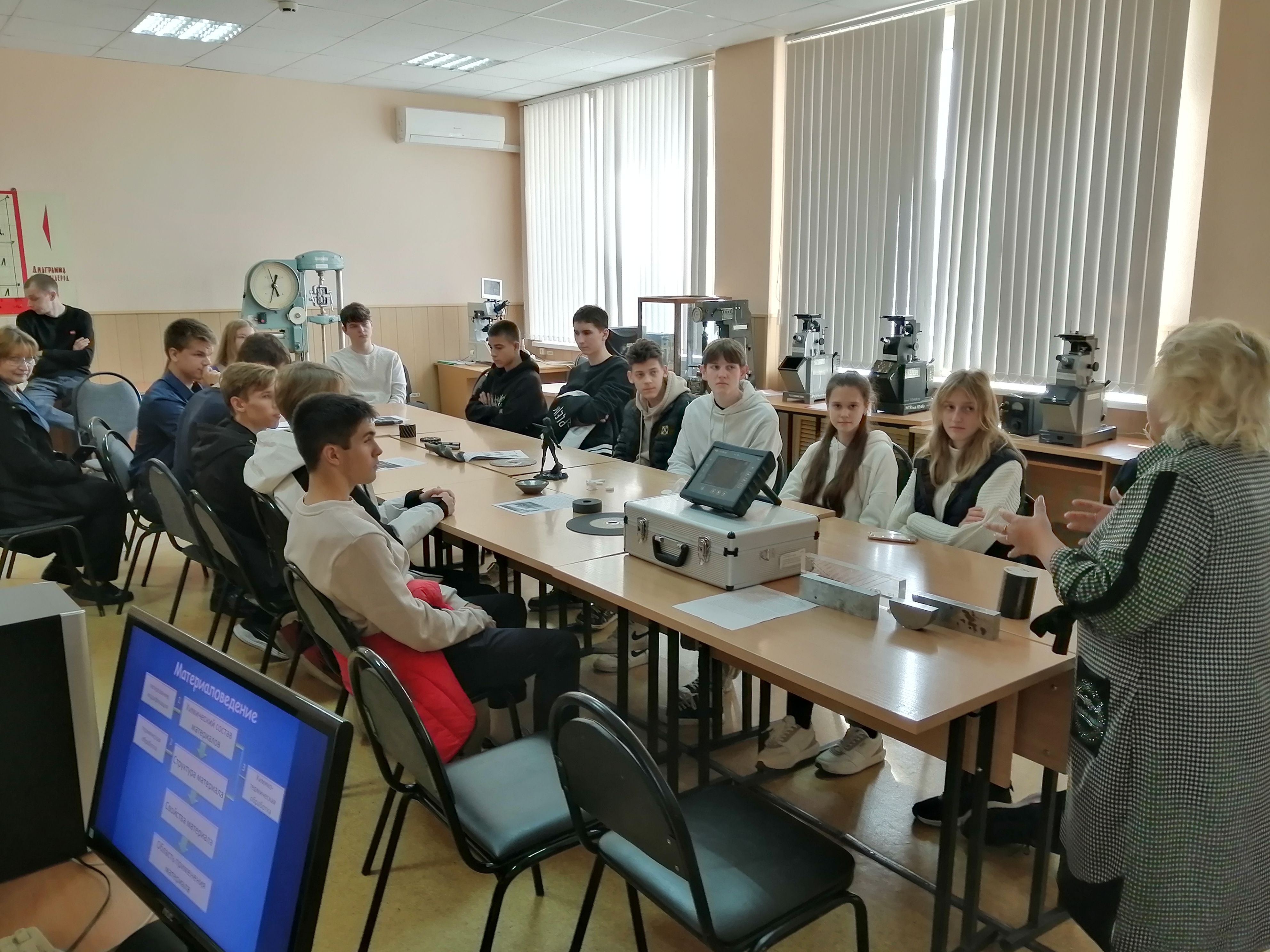 Доцент Ирина Гоц и старший преподаватель Сергей Телегин продемонстрировали посетителям фестиваля работу металлографических и оптических микроскопов, школьники смогли изучить шлифы с различными типами металлов и сплавов; измерить твердость и механические свойства материалов с использованием современного оборудования. Особое внимание было уделено перспективам учебы в институте и на кафедре.