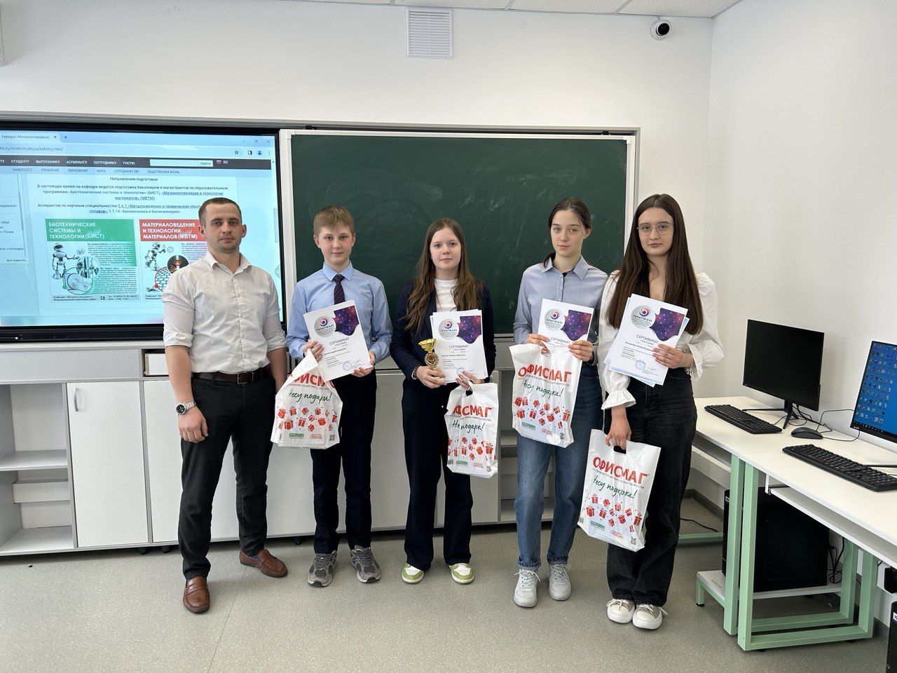 Сотрудники кафедры «Материаловедение и биомедицинская инженерия» (МБИ) Института машиностроения, материаловедения и транспорта (ИММТ) провели образовательный трек «Биоинженерия». Общая группа «BIOвектор», состоящая из 16 старшеклассников Саратовской области, прошедших конкурсный отбор была разделена на 4 команды, разрабатывающие свои проекты в области биоинженерии и новых материалов.