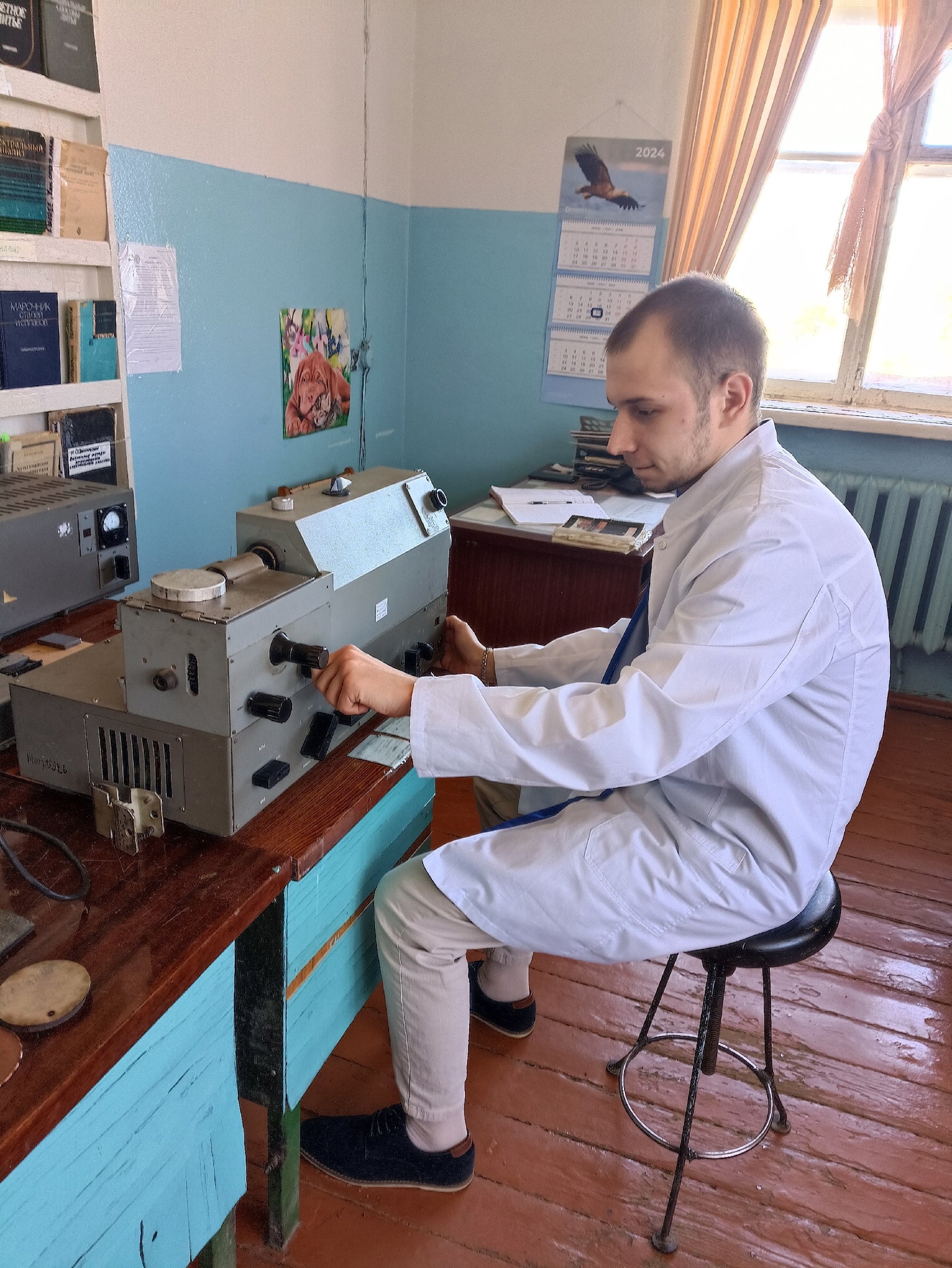 Используя производственные мощности АО «Петровский электромеханический завод «Молот» Даниил Бородавкин изучает методы спектрального анализа сплавов.