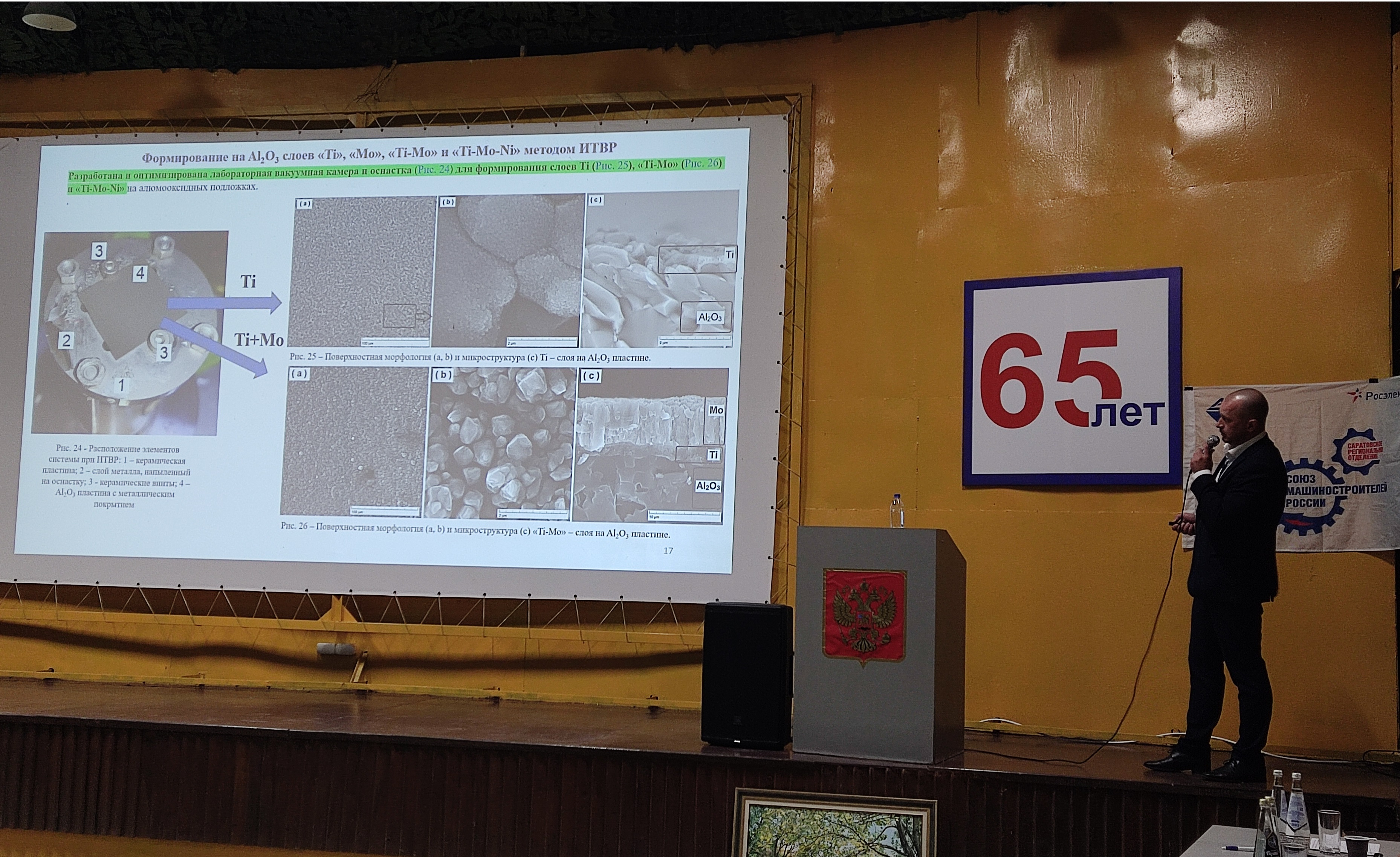 Кандидат технических наук, доцент кафедры МБИ Владимир Кошуро выступил с докладом, посвященным созданию металлизованных структур, включая слои тугоплавких металлов, для керамических подложек мощных электронных приборов.