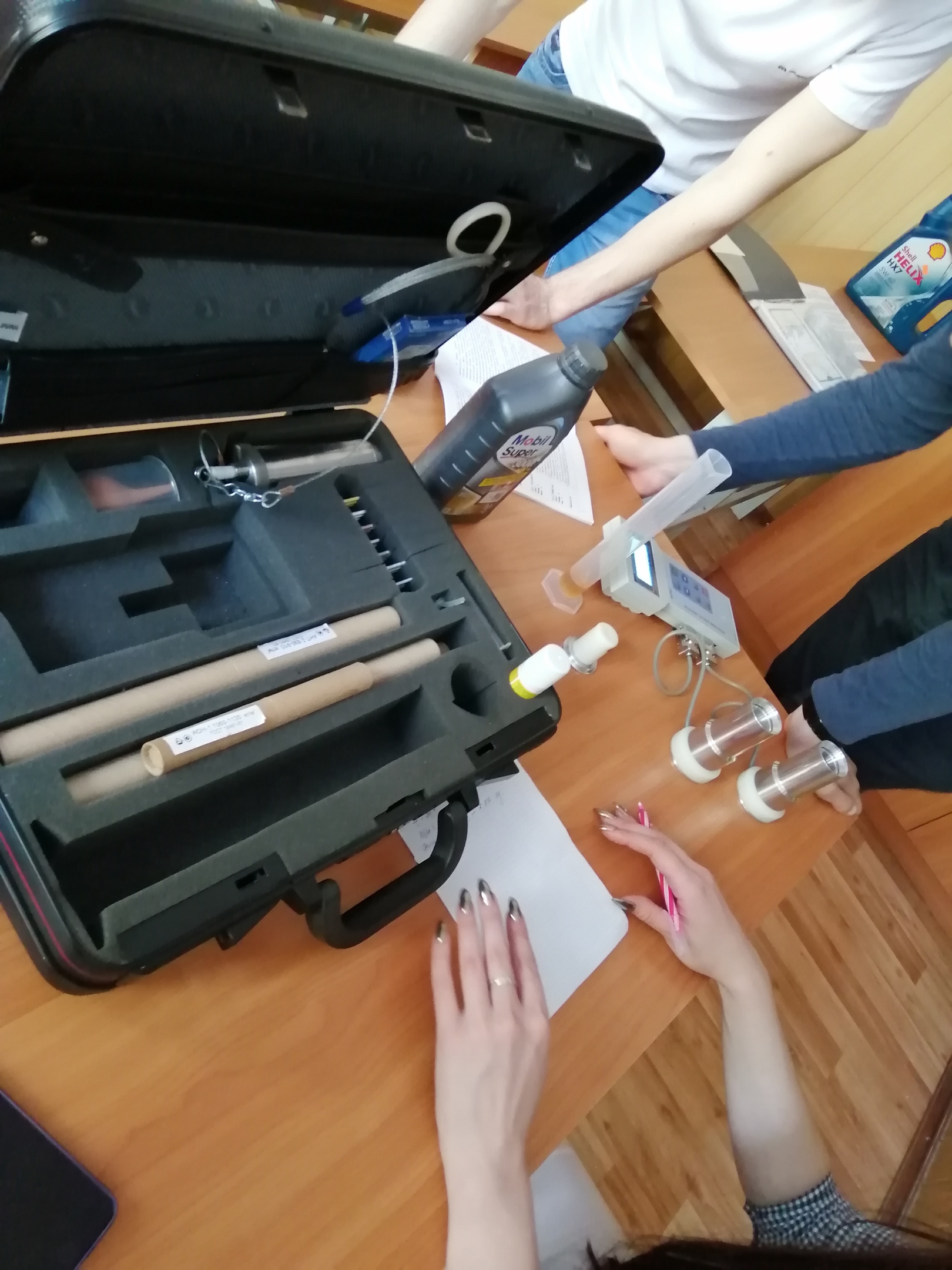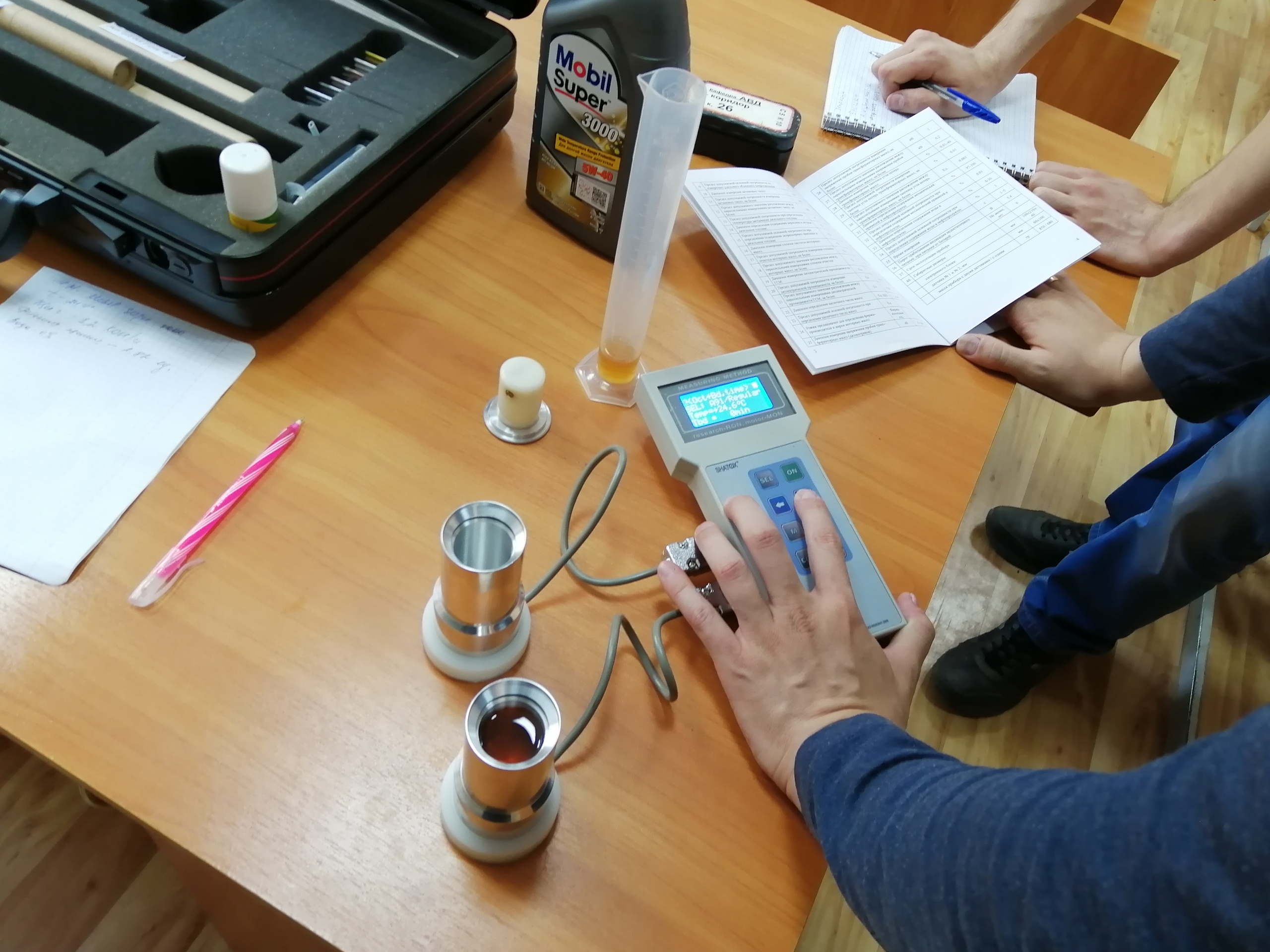 Экспресс-анализатором качества нефтепродуктов SHATOX SX-300 учащиеся определили щелочное число моторных масел. Идентификацию марки моторного масла они произвели по принципу определения диэлектрической проницаемости. Оригинальные моторные масла имеют определенную величину этой характеристики. Марки масел ведущих производителей входят в базу данных прибора (база данных может пополняться или изменяться).