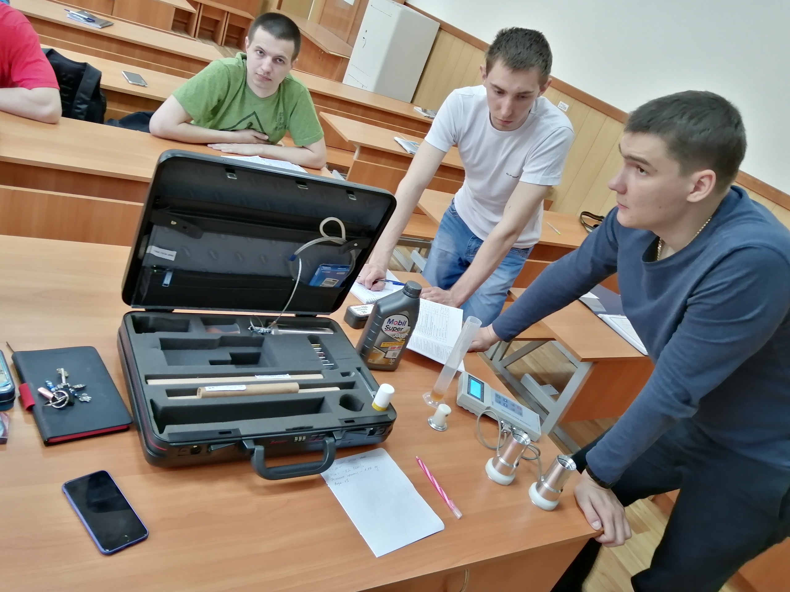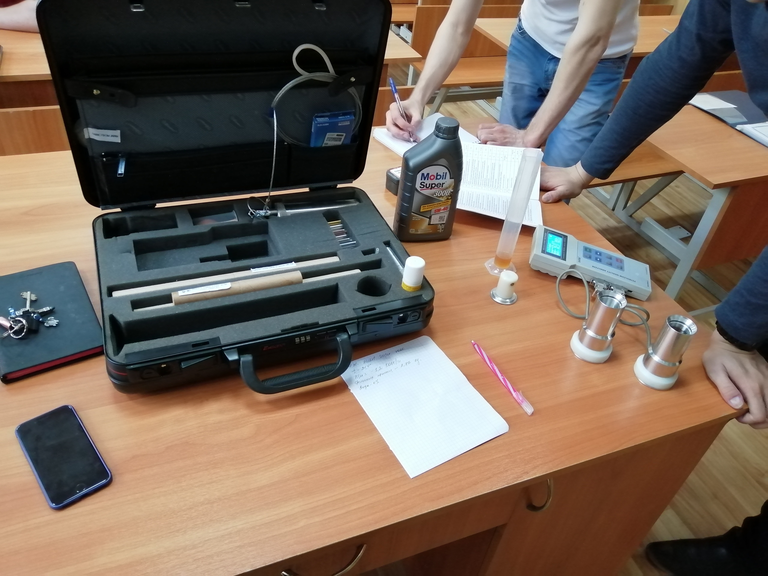 Магистранты 1 курса направления «Эксплуатация транспортно-технологических комплексов» под руководством ассистента кафедры ОПБС Алисы Кожинской провели эксперимент по определению качества моторных масел анализатором Shatox SX-300.