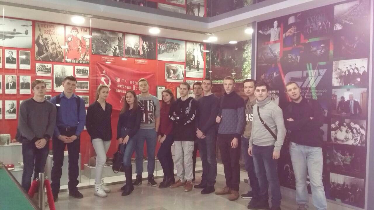 Студенты направления «Эксплуатация транспортно-технологических машин и комплексов» (ЭТТК) гр. б1ЭТТК-12, б1ЭТТК-11 с кураторами Кувериным И.Ю., Никитиным А.В. и направления «Технология транспортных процессов» (ТТПР) с куратором Горшениной Е.Ю. посетили «Музей истории СГТУ имени Гагарина Ю.А».