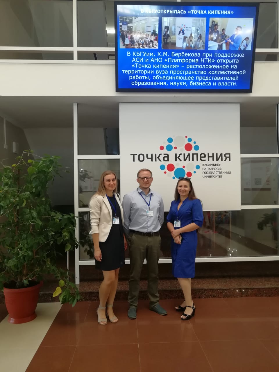 5-7 сентября 2019 года доцент кафедры ОПБС Екатерина Горшенина и ведущий юрисконсульт отдела по правовой работе СГТУ Анна Бушева приняли участие в мероприятии «Стратегическая сессия «Точка кипения», которое состоялось в Кабардино-Балкарском государственном университете им. Х.М. Бербекова в Нальчике (Кабардино-Балкария).