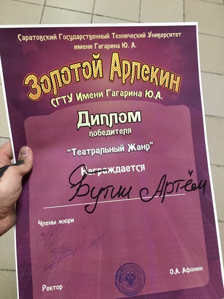 «Золотой Арлекин – 2019» собрал более 50 участников. Впервые в этом году наградили двух победителей. Бутин Артём - студент 3 курса ИнЭТС стал победителем Театрального жанра.