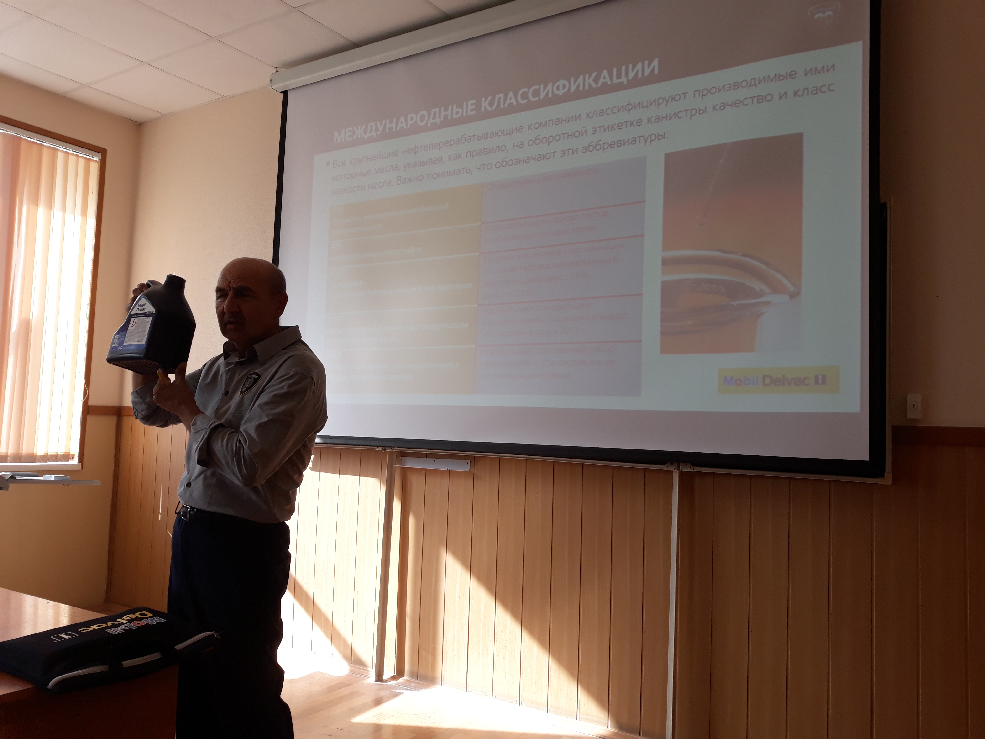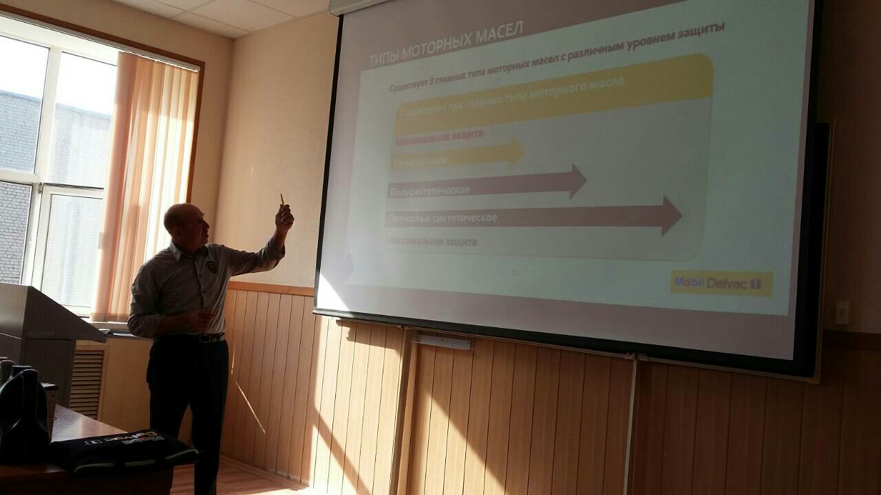 Лекция была посвящена таким вопросам, как: почему так важно регулярно менять масло в двигателе внутреннего сгорания, производство и характеристики моторного масла, каковы современные тенденции в технических условиях на смазочные материалы и многое другое.