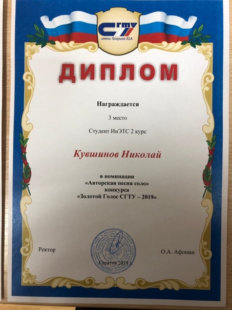 Поздравляем студента 2 курса ИнЭТС с достойным выступлением на конкурсе «Золотой голос СГТУ - 2019» !