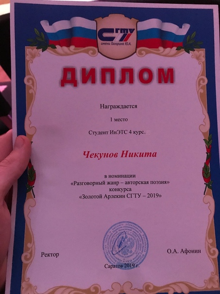 - 1 место в номинации "Авторская поэзия" - Чекунов Никита Б3-ТПЭН-31