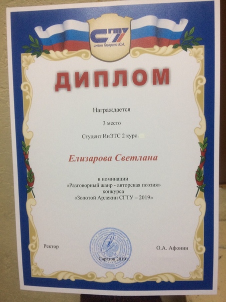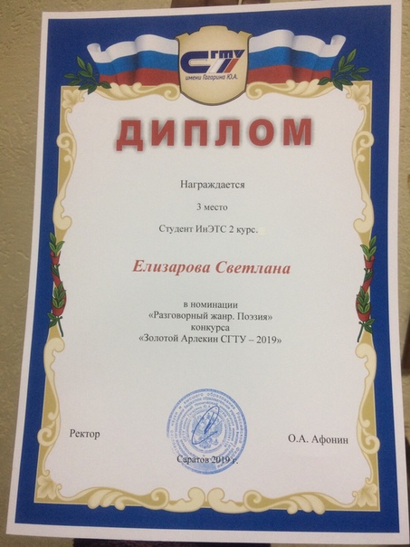 - 3 место в номинации "Поэзия" - Елизарова Светлана б1-ТТПР-21