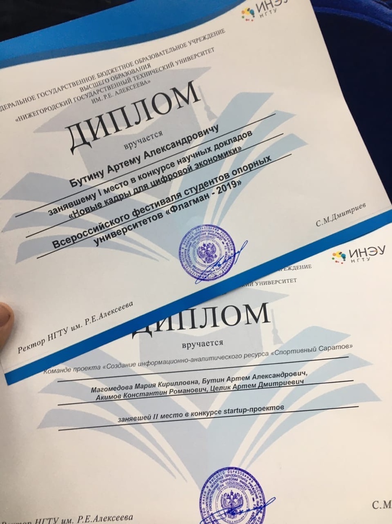 Как итог, второе место в startup-проектах досталось СГТУ им. Гагарина Ю.А. и Бутин Артём выиграл первое место в конкурсе научных докладов с темой: «Логистический аутсорсинг: цифровизация, конкурентные преимущества».
