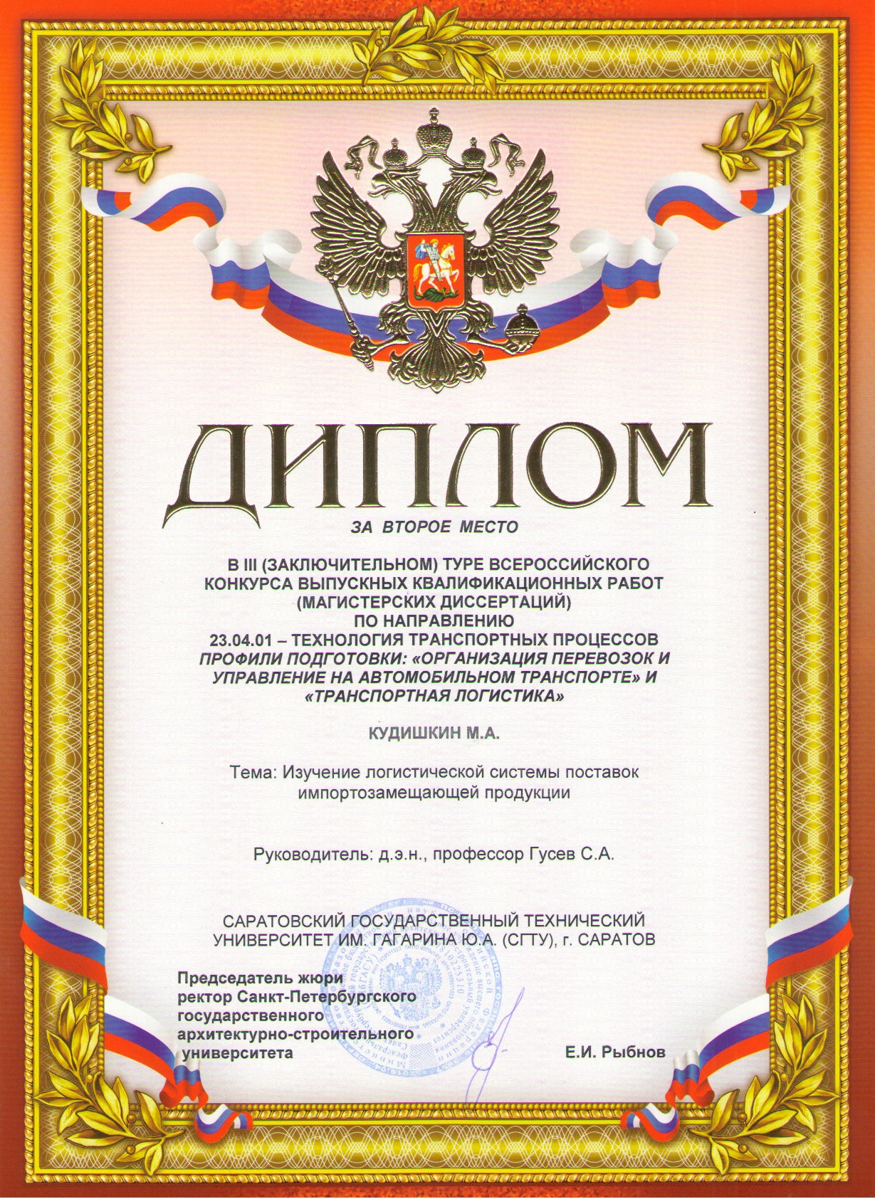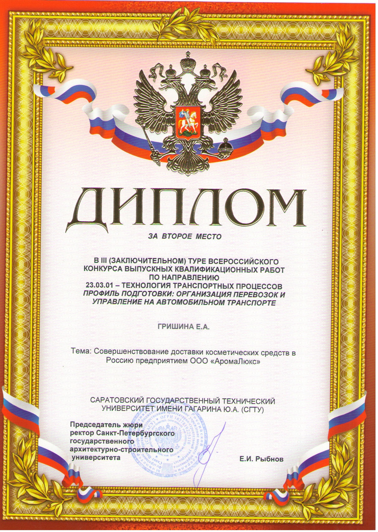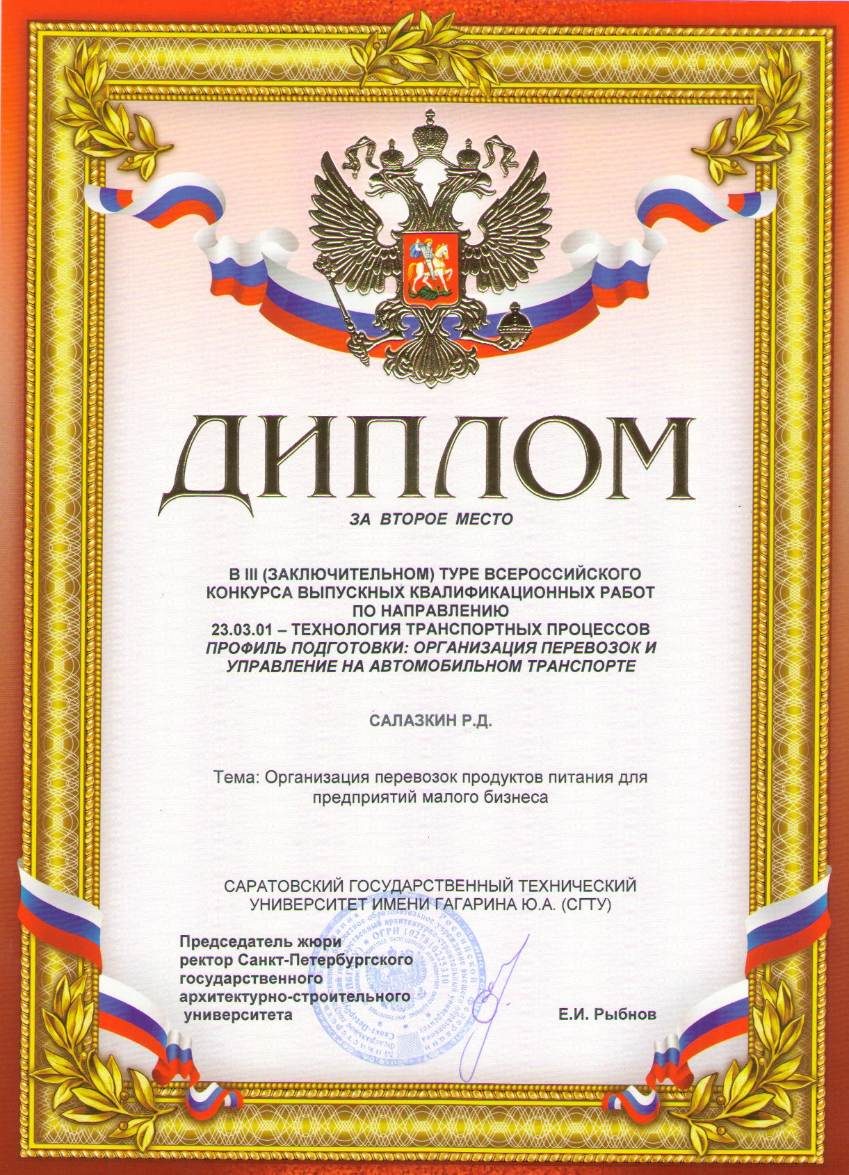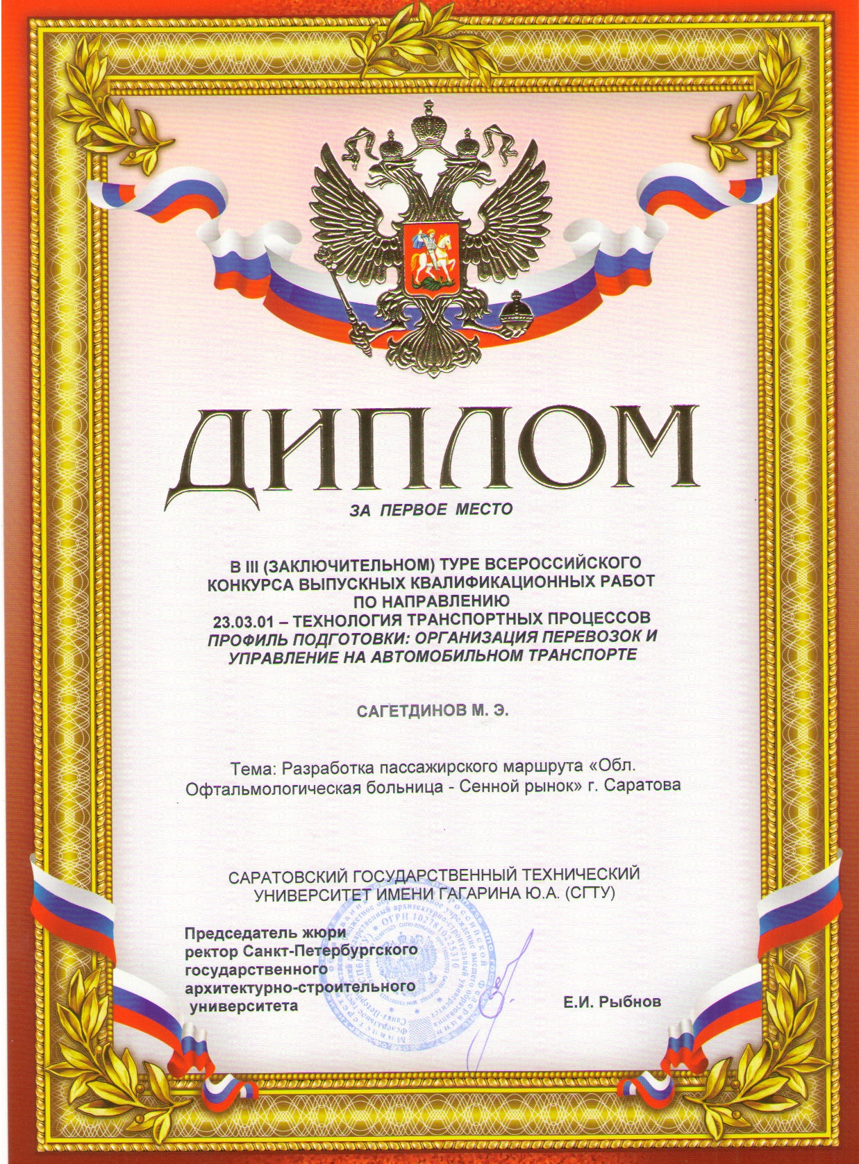 В ноябре 2017 года на базе Санкт-Петербургского государственного архитектурно-строительного университета состоялся III (заключительный) тур Всероссийского смотра-конкурса выпускных квалификационных работ подготовки бакалавров по направлению 23.03.01–Технология транспортных процессов профиль подготовки «Организация перевозок и управление на транспорте».