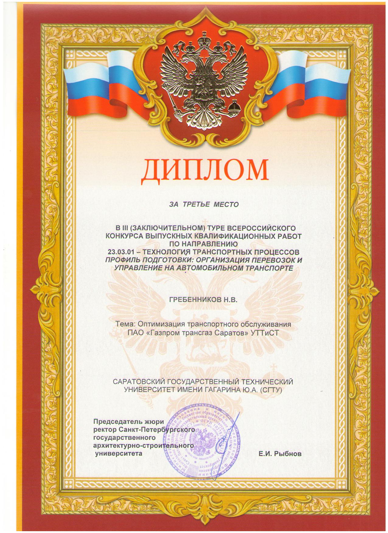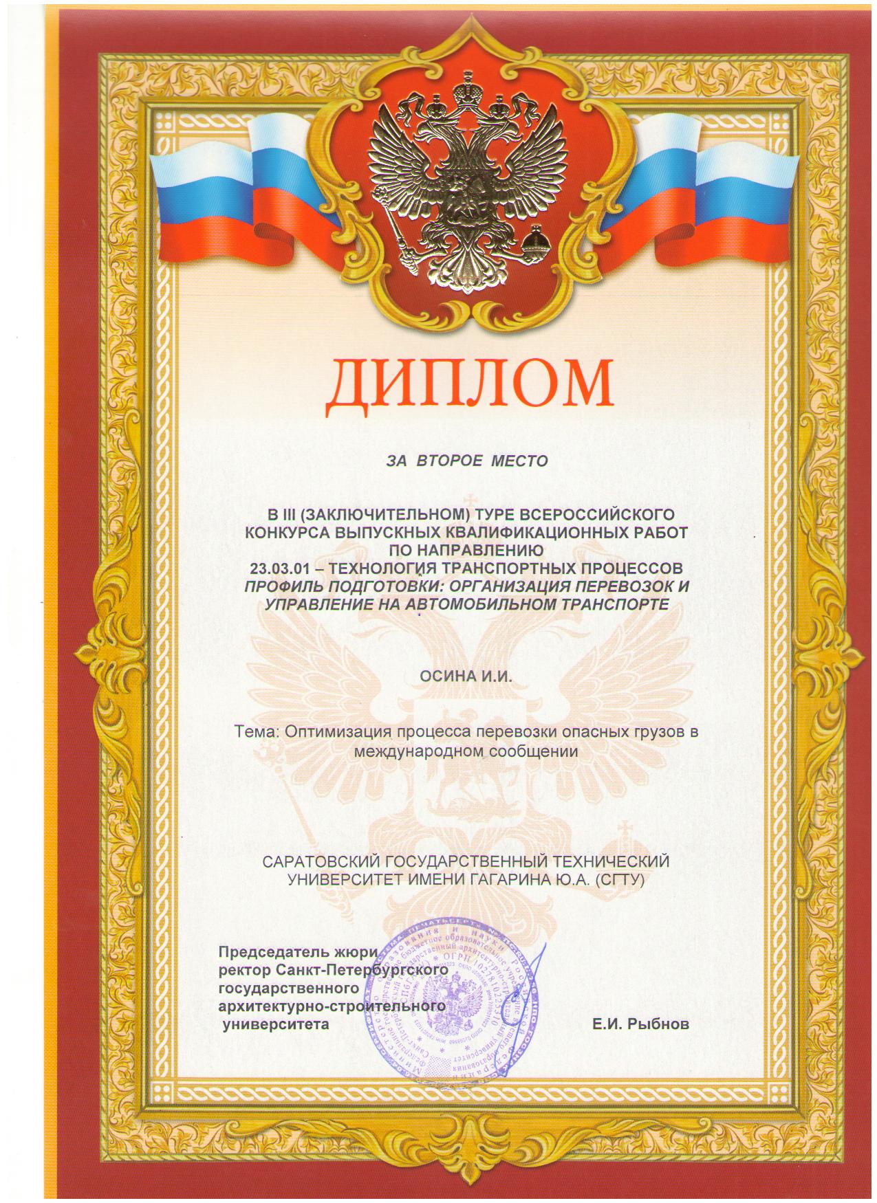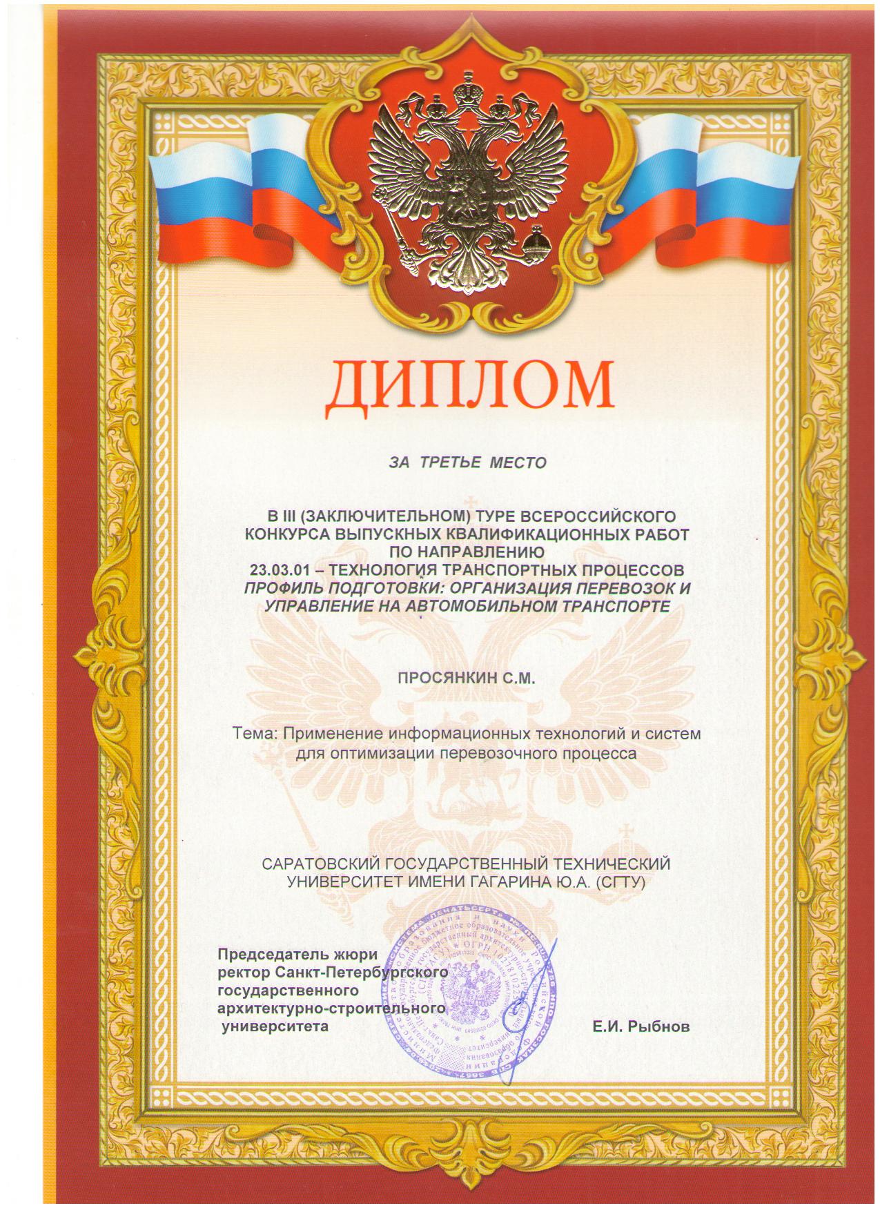 В ноябре 2016 года на базе Санкт-Петербургского государственного архитектурно-строительного университета состоялся III (заключительный) тур Всероссийского смотра-конкурса выпускных квалификационных работ подготовки бакалавров по направлению 23.03.01–Технология транспортных процессов профиль подготовки «Организация перевозок и управление на транспорте».