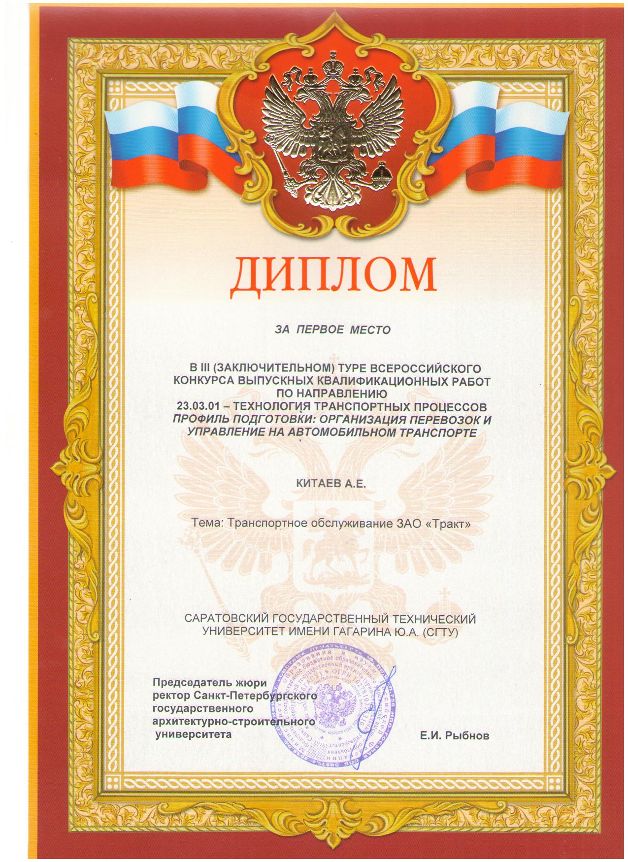 • Китаев А.Е. Транспортное обслуживание ЗАО «Тракт». Руководитель д.э.н.,проф. Гусев С.А.