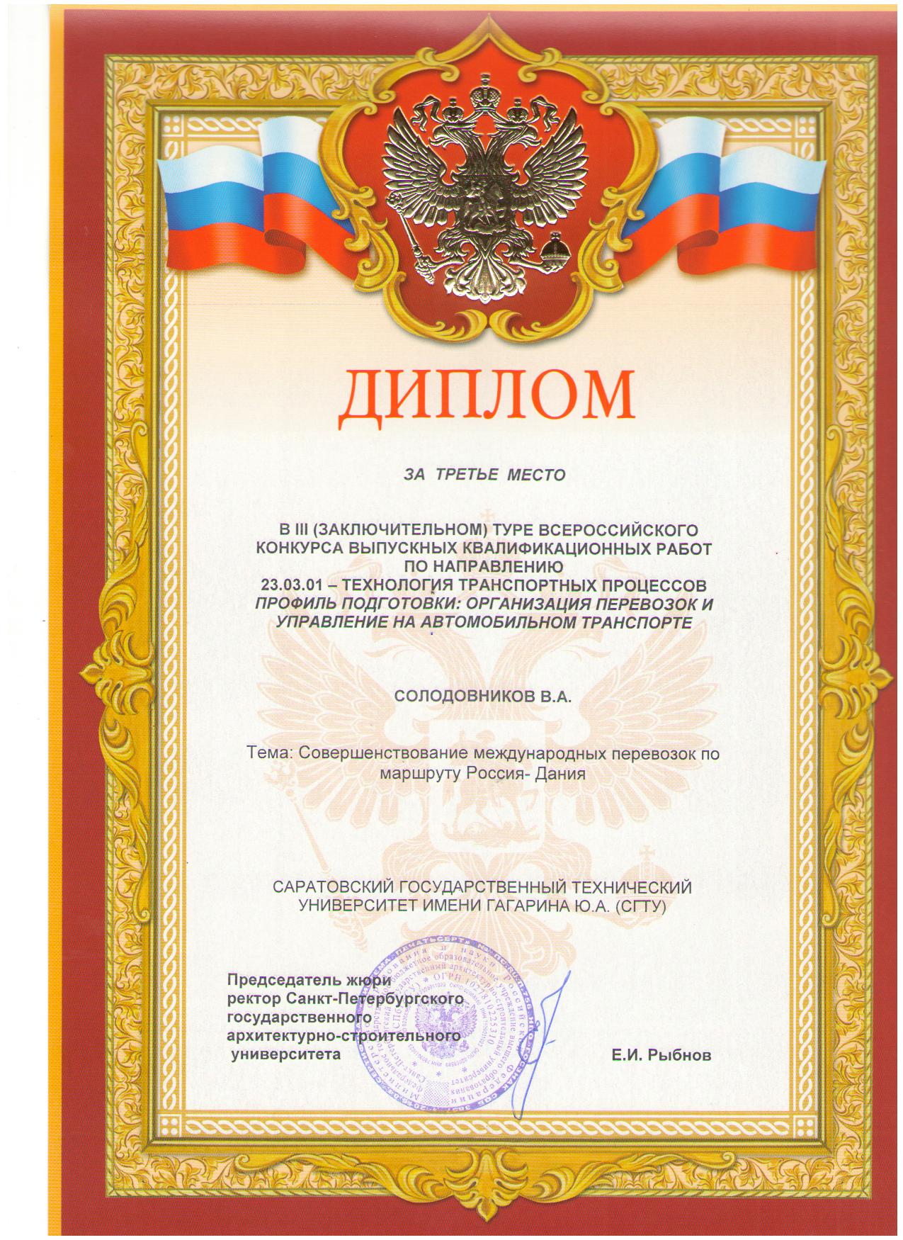 • Солодовников В.А. Совершенствование международных перевозок по маршруту Россия-Дания. Руководитель к.э.н., доц. Евсеева А.А.