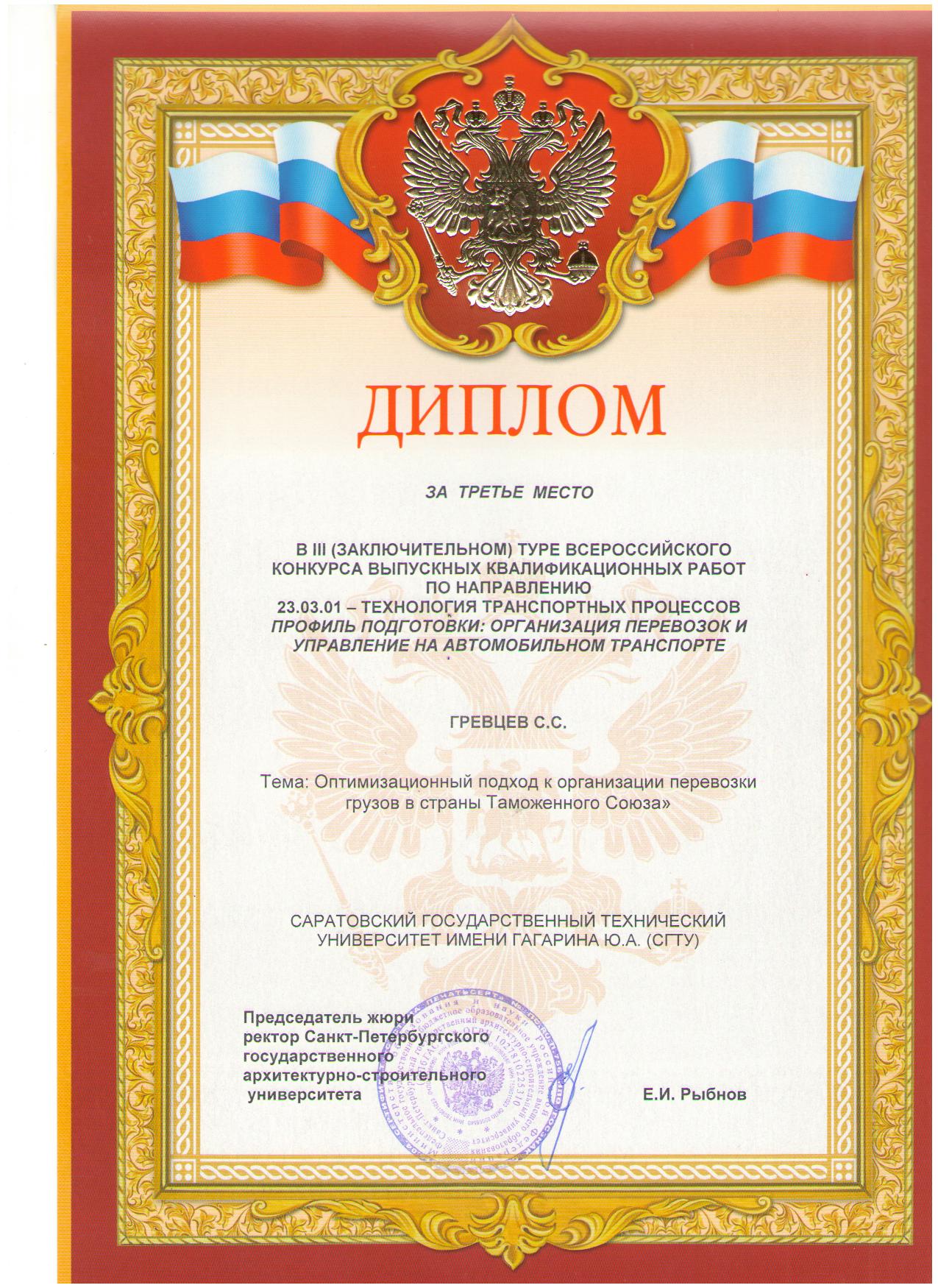• Гревцев С.С. Оптимизационный подход к организации перевозки грузов в страны Таможенного Союза. Руководитель к.э.н., доц. Евсеева А.А.