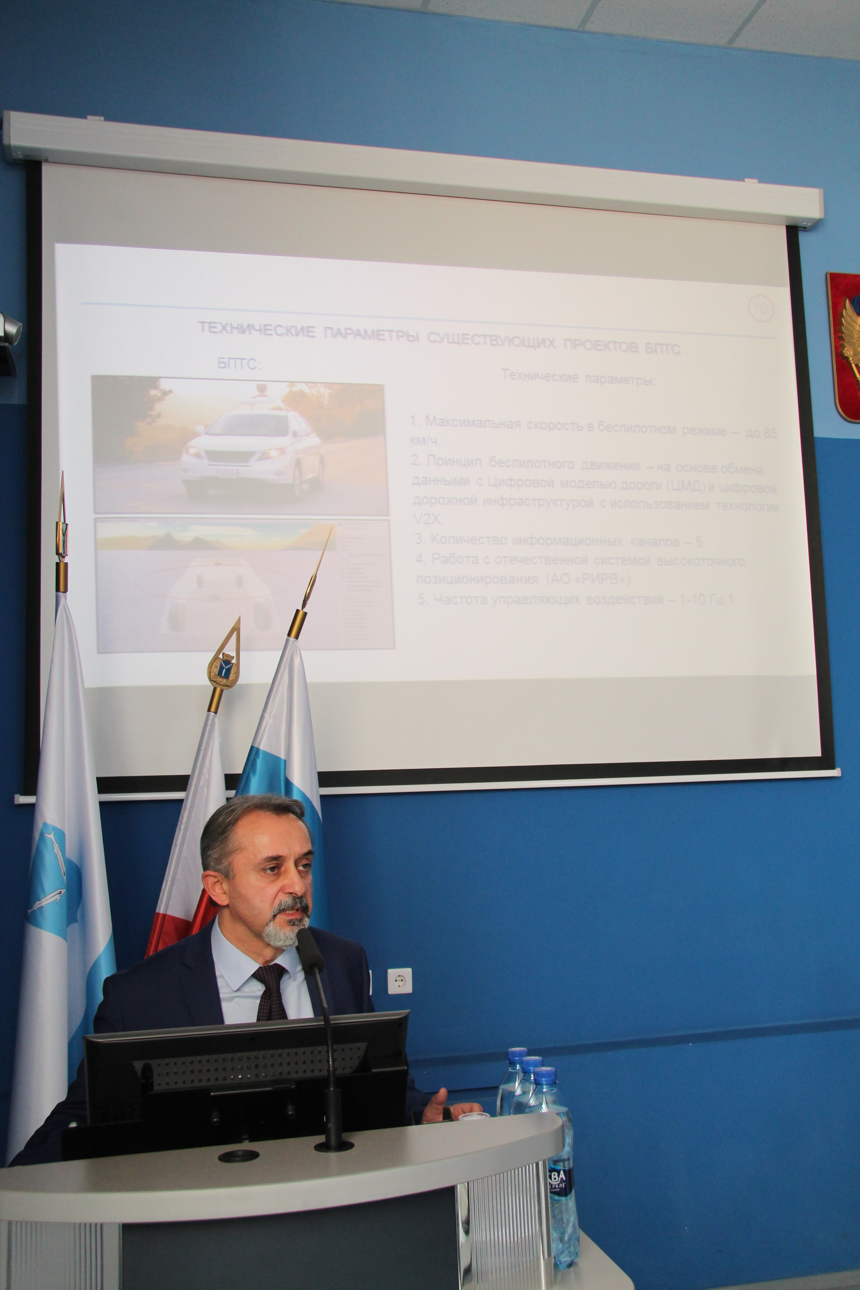 С приветственным словом выступил проректор по научной работе Д.Ю. Петров. На пленарном заседании выступил зав. кафедрой ОПБС д.т.н., профессор В.Н. Басков. Д.т.н., профессор А.С. Денисов представил биографию и основные достижения Федора Николаевича Авдонькина. Д.т.н., профессор С.В. Жанказиев (МАДИ, Москва), входящий в состав Правительственной комиссии РФ по обеспечению безопасности дорожного движения озвучил перспективы развития беспилотных автомобилей и интеллектуальных транспортных систем. Д.т.н., профессор В.М. Власов (МАДИ, Москва) выступил с перспективами использования интеллектуальных транспортных систем в целях эффективной и безопасной организации перевозок пассажиров общественным транспортом. Д.т.н., профессор А.Н. Новиков (ОГУ имени И.С. Тургенева, Орел) рассказал о вкладе ОГУ имени И.С. Тургенева в развитие транспортной отрасли и результатах многолетнего взаимодействия с СГТУ. Полковник полиции, начальник УГИБДД ГУ МВД России по Саратовской области П.В. Свиридов озвучил информацию о состоянии БДД в Саратовской области и методах, которые позволяют снизить количество смертельных ДТП. Начальник Управления транспортной безопасности и организации транспортного обслуживания населения ГКУ Саратовской области «Дирекция транспорта и дорожного хозяйства» к.т.н. Б.А. Кайданов проинформировал о текущем состоянии в области организации пассажирских и грузовых перевозок в Саратовской области. Д.т.н., профессор Л.Я. Кожуховская рассказала о результатах международного сотрудничества с Кыргызско-Российским Славянским университетом.