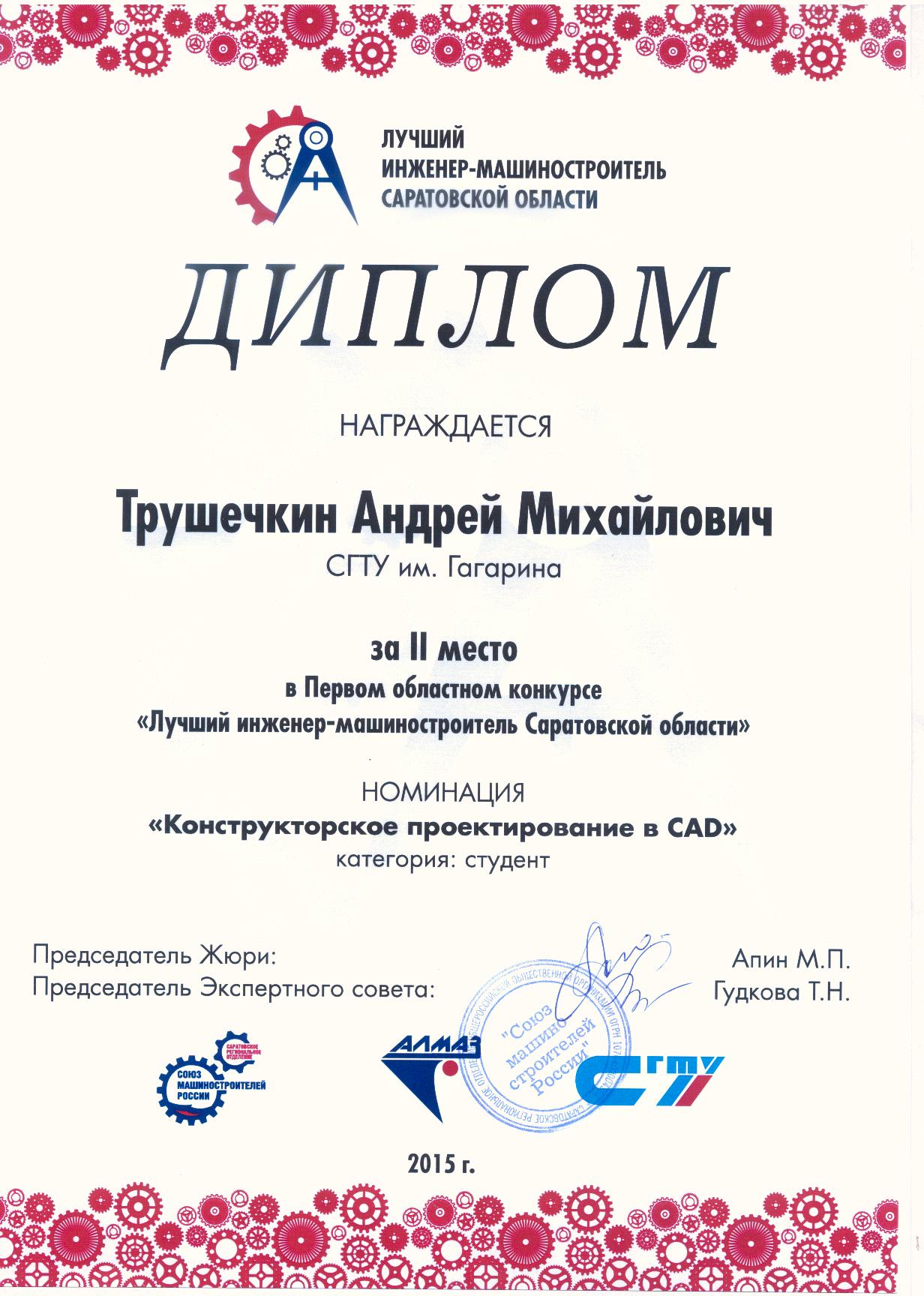 Трушечкин Андрей Михайлович – 2 место, специальность «Проектирования технических и технологических комплексов»
