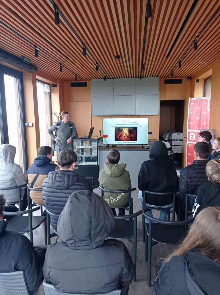 27 апреля на территории у спускаемого аппарата космического корабля доценты кафедры «Тепловая и атомная энергетика» имени А.И. Андрющенко Института энергетики Сергей Новичков и Алексей Портянкин провели лекторий «Притяжение Гагарина Ю.А.» и тематический мастер-класс «Что значит быть энергетиком».
