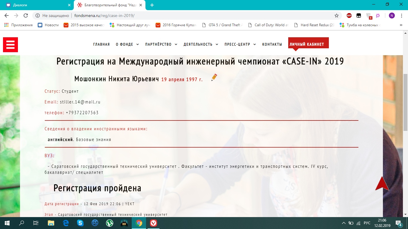 - Чемпионат CASE-IN – нестандартное состязание. Это командные соревнования, здесь от каждого зависит судьба команды. Важной задачей является правильное распределение ролей в команде. Я начал участвовать в чемпионате CASE-IN, еще будучи школьником. Тогда у меня даже не было мысли, что этот Чемпионат сыграет ключевую роль в выборе будущей специальности. Каждый сезон затрагивает совершенно разные направления в энергетике и регионы. Я являюсь капитаном команды Digital Emotion, что очень ответственно. От меня требуется стимулировать команду и принимать окончательные ключевые решения. В этом году Чемпионат проходит в новом формате. Нам придется выступать перед камерой, не видя лиц наших жюри. Это будет совершенно новый опыт, и от этого еще интересней. Надеюсь, мой вуз продолжит участвовать в Чемпионате, а моя команда сможет достичь успехов и занять призовое место.