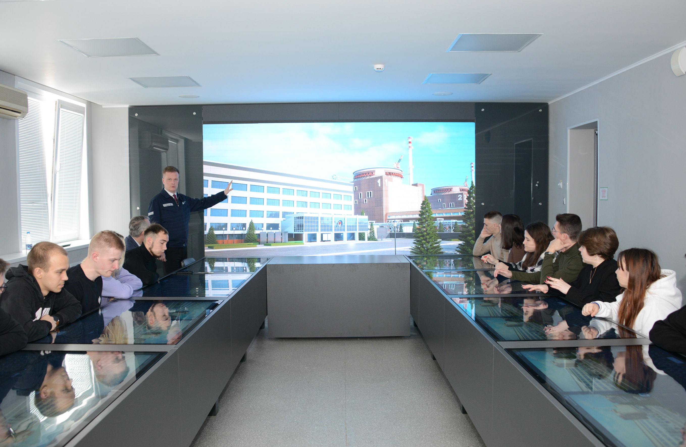 В кабинете интонационных технологий провели 3D-экскурсию по станции. На учебном тренажере блочного щита управления в режиме реального времени студенты смогли почувствовать себя работниками станции, увидели настоящие данные выработки рабочего энергоблока АЭС.