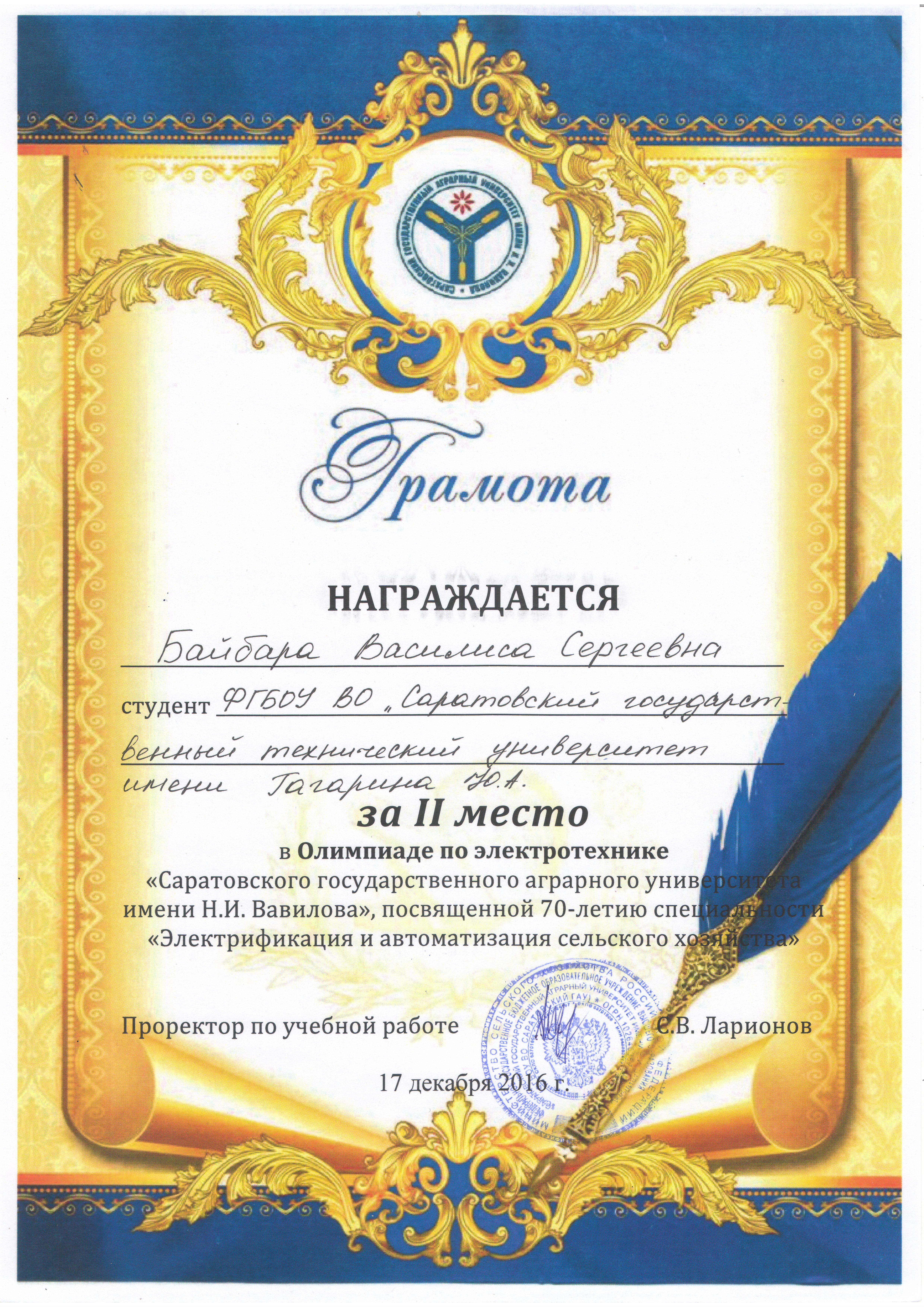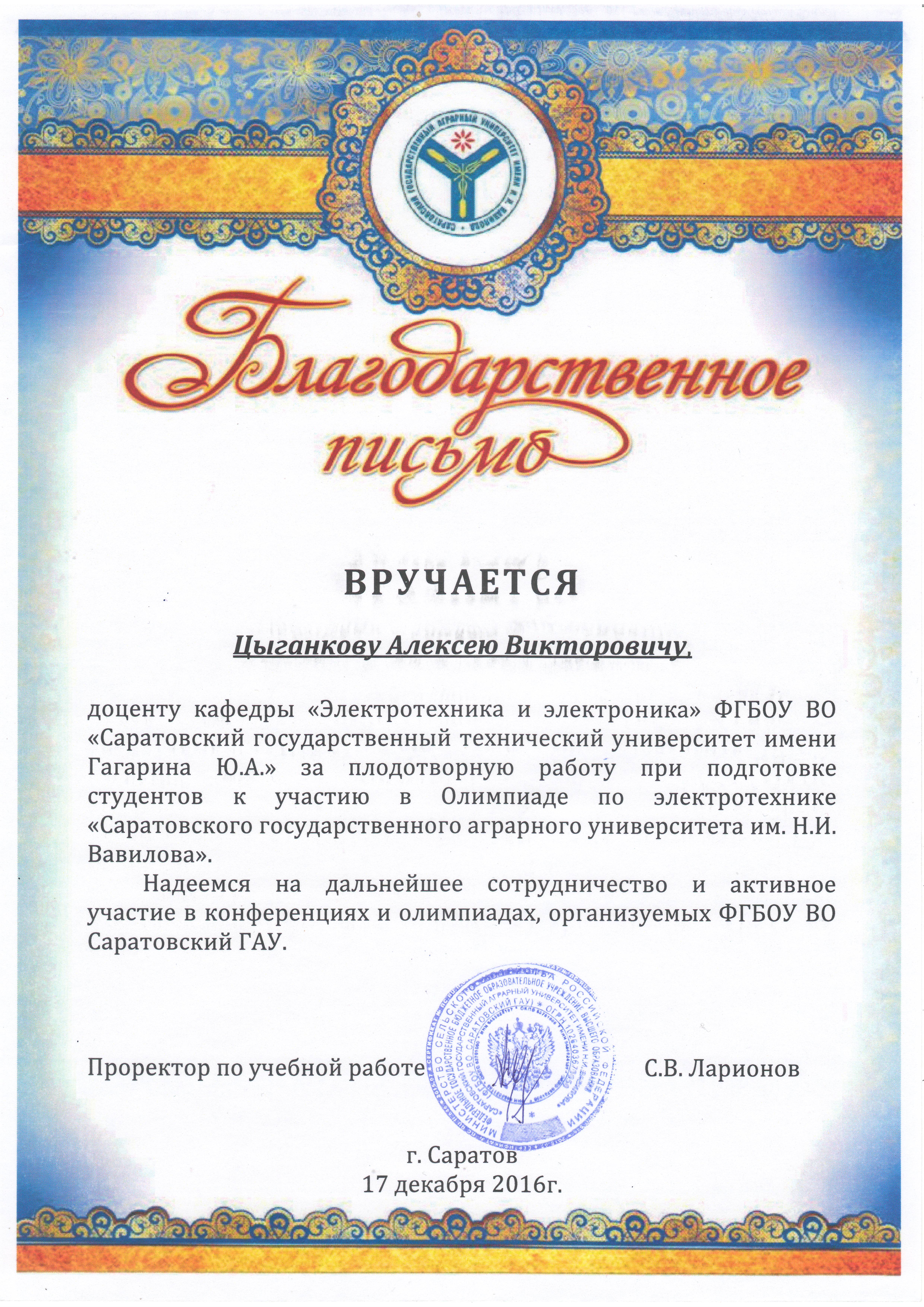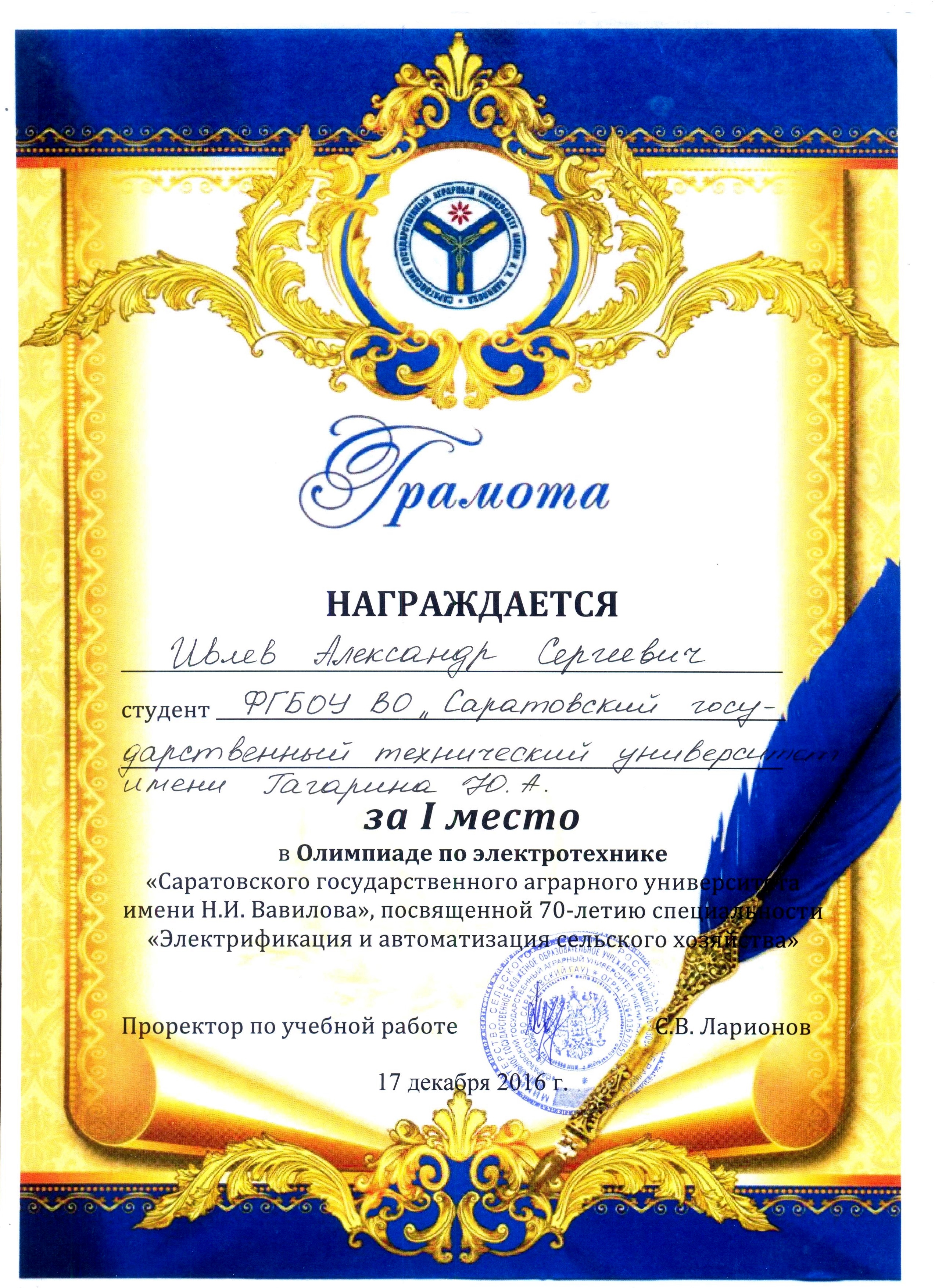 17 декабря 2016 года в Саратовском государственном аграрном университете (СГАУ) прошла Олимпиада по электротехнике среди студентов высших образовательных учреждений города Саратова и Саратовской области.