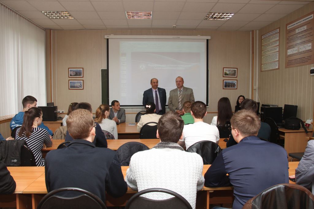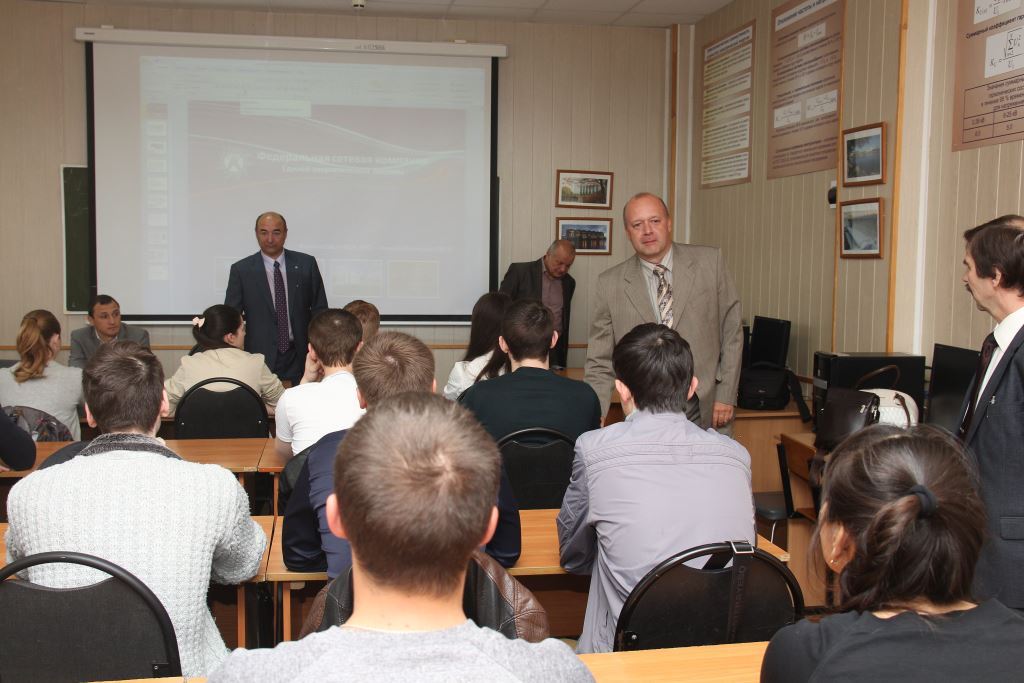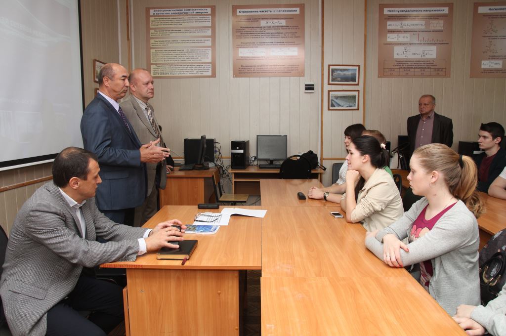 В рамках соглашения об организации взаимоотношений между филиалом ОАО «ФСК ЕЭС» - МЭС Волги и СГТУ имени Гагарина Ю.А. 14 мая состоялась встреча представителей Нижне-Волжского предприятия магистральных электрических сетей во главе с директором Уметбаевым А.С. со студентами группы б1ЭЛЭТ31. На встрече присутствовали также декан энергетического факультета Антропов П.Г., заведующий кафедрой ЭПП Менщиков И.А., профессор Артюхов И.И. С большим интересом студенты прослушали доклад о структуре предприятия, условиях труда, обеспечении социальным пакетом и т.д. Была подтверждена договоренность о прохождении производственной практики и последующего трудоустройства выпускников энергетического факультета на предприятиях ОАО «ФСК ЕЭС», в том числе Нижне-Волжском ПМЭС. После встречи студенты группы б1ЭЛЭТ31 вместе с заведующим кафедрой ЭПП Менщиковым И.А. посетили центральную распределительную подстанцию «Курдюм».