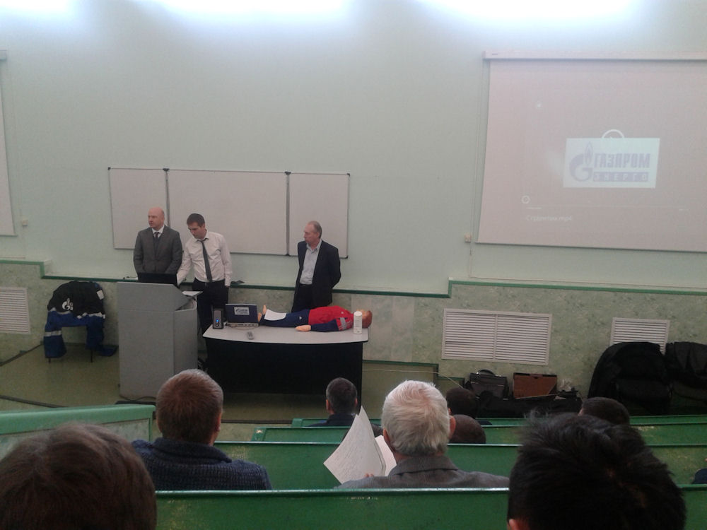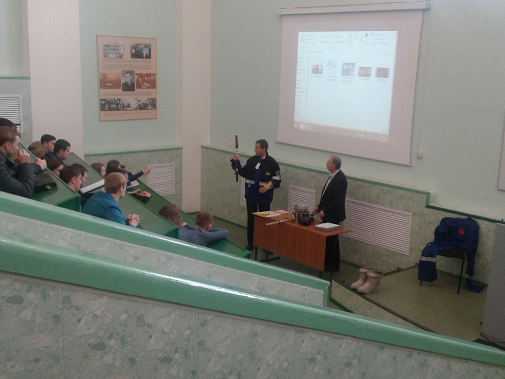 15.12.2016 В 13:00 в аудитории 1/278 прошла лекция по охране труда, проводимая представителями Газпромэнерго, на которой присутствовали сотрудники и студенты 1-4 курсов кафедры ЭЛЭТ. Студентам были продемонстрированы видеоролики с чрезвычайными ситуациями на энергетических объектах и средства индивидуальной защиты и контроля за работой сотрудников, работающих в энергетической отрасли в области электроснабжения и распределения. Все желающие могли примерить средства индивидуальной защиты, а также потренироваться в проведении искусственного дыхания на роботе-тренажере "Гоша".