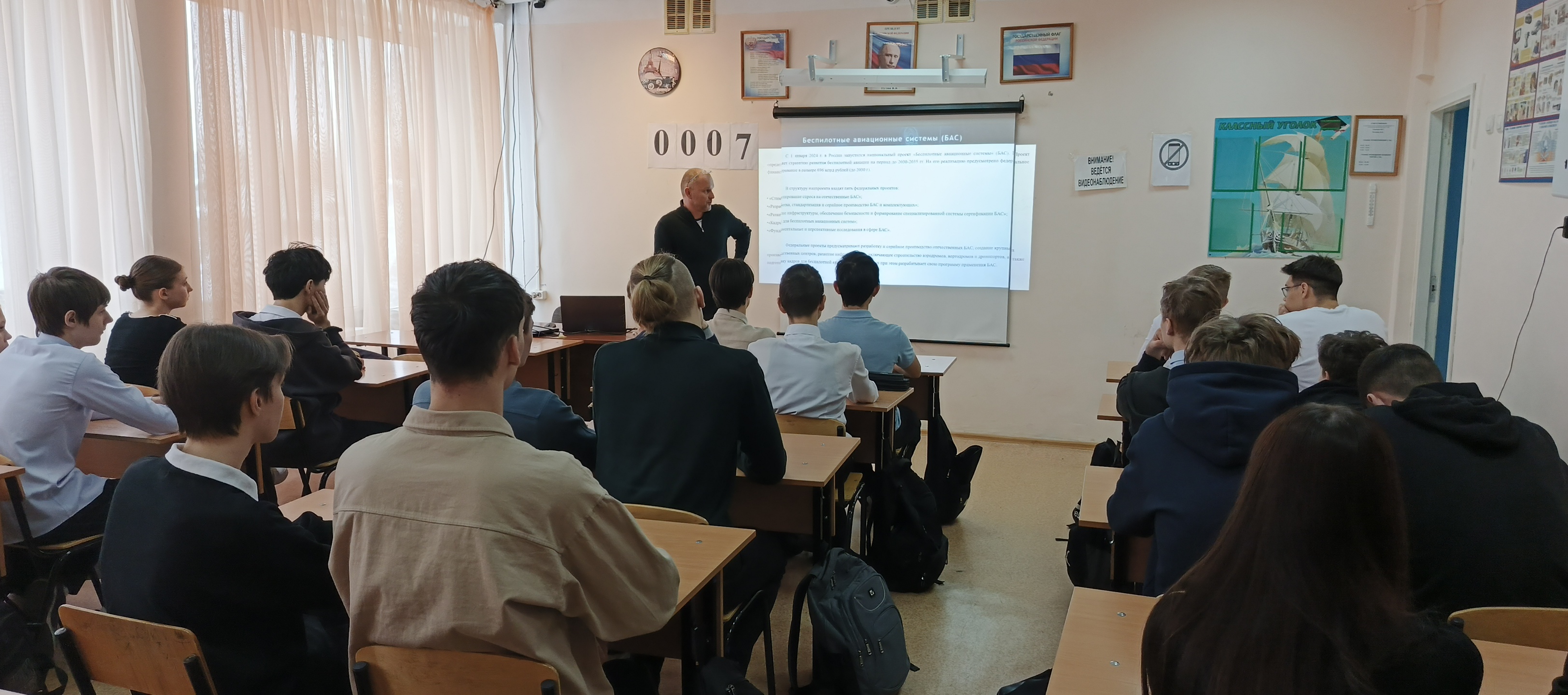 Занятие было посвящено беспилотным летательным аппаратам (БПЛА). Доцент рассказал школьникам об истории беспилотной авиации и о её современном состоянии. Особое внимание уделили системам управления и навигации БПЛА. Большой интерес у ребят вызвали системы управления беспилотниками на основе искусственного интеллекта.