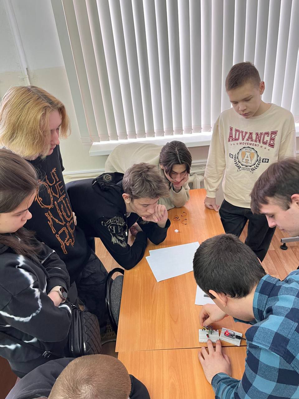 Студенты четвертого курса направления «Электроника и наноэлектроника» Владислав Мирумян, Илья Александров и Максим Аникеев – провели для учеников мастер-класс по сборке электрических схем.