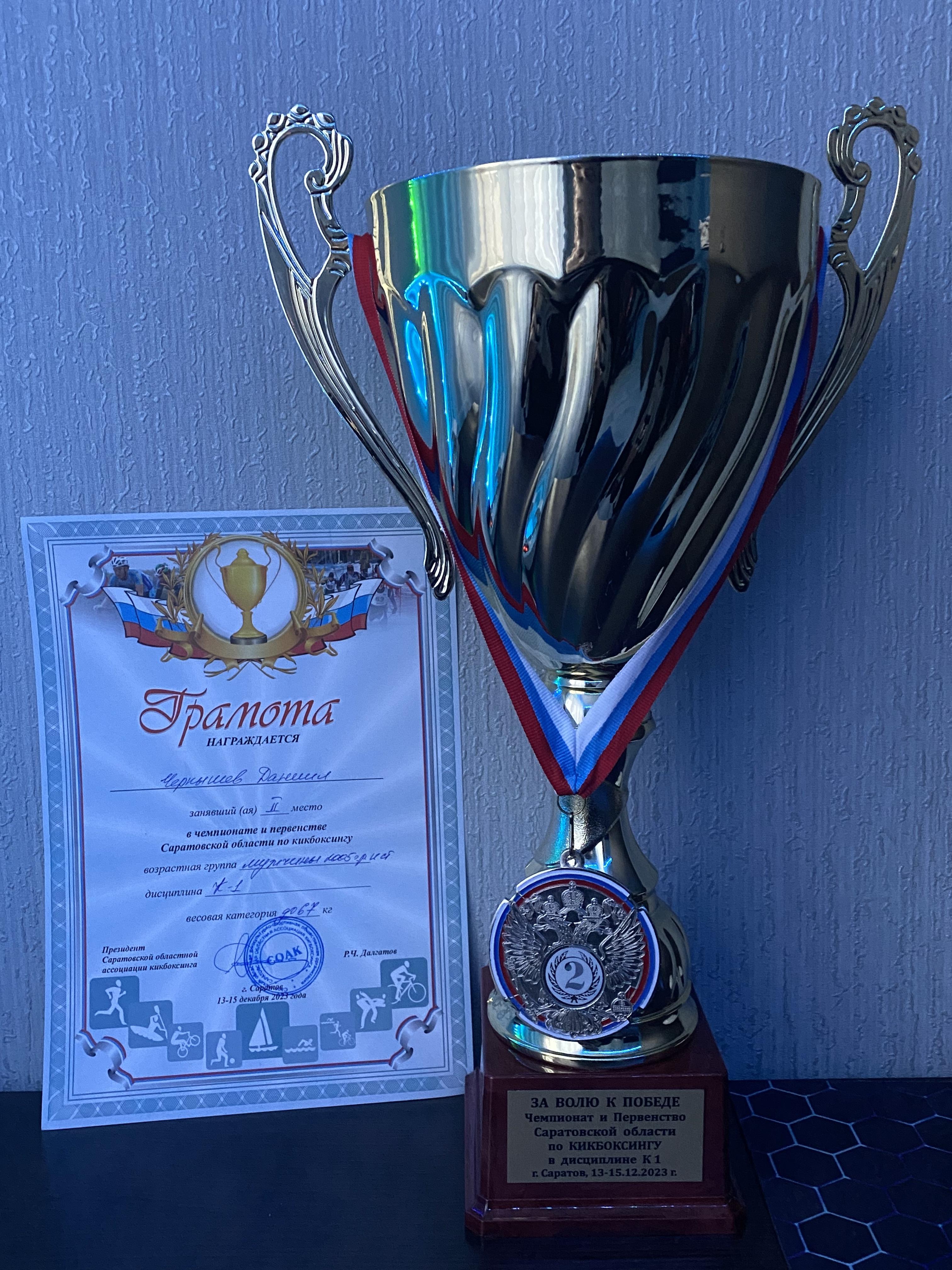 Выступая в разделе К-1, в возрастной категории 2005 г.р. и старше, весовой категории до 67 кг, Даниил Чернышев завоевал серебряную медаль и заслуженный кубок «За волю к победе»!