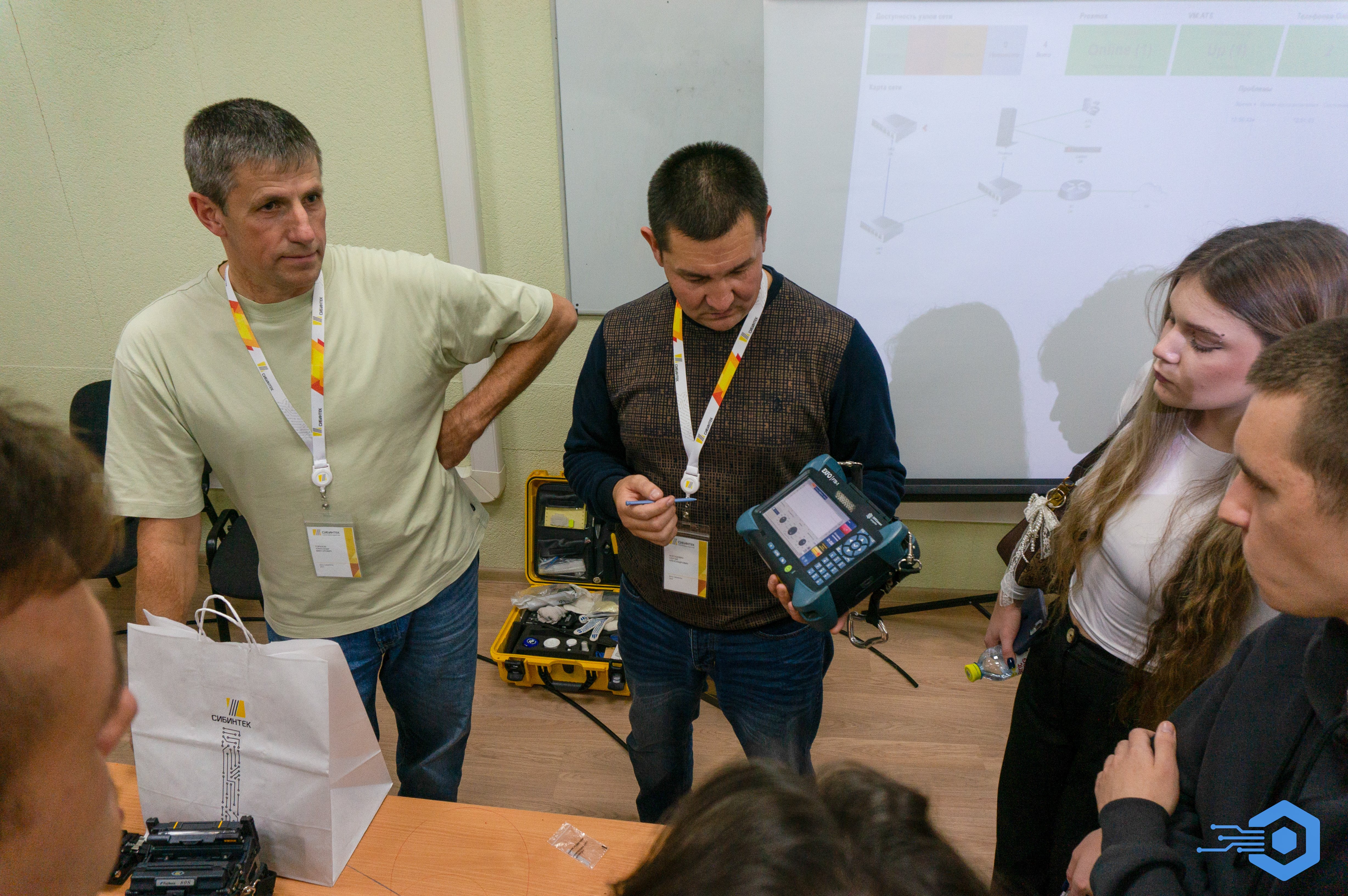 После торжественного открытия для студентов были организованы интерактивные площадки и прошла серия мастер-классов: «Стань архитектором информационной безопасности на один день», «Сварка оптоволоконного кабеля с проведением измерений и соединение линией двух коммутаторов», «Конфигурация ПК», «Построение отказоустойчивой сетевой инфраструктуры». Особый интерес вызвала организация ВКС на базе мобильного пункта управления. Не менее ценным было живое общение студентов с представителями компании, консультации по будущей профессии, обсуждение вопросов прохождения практик и трудоустройства.