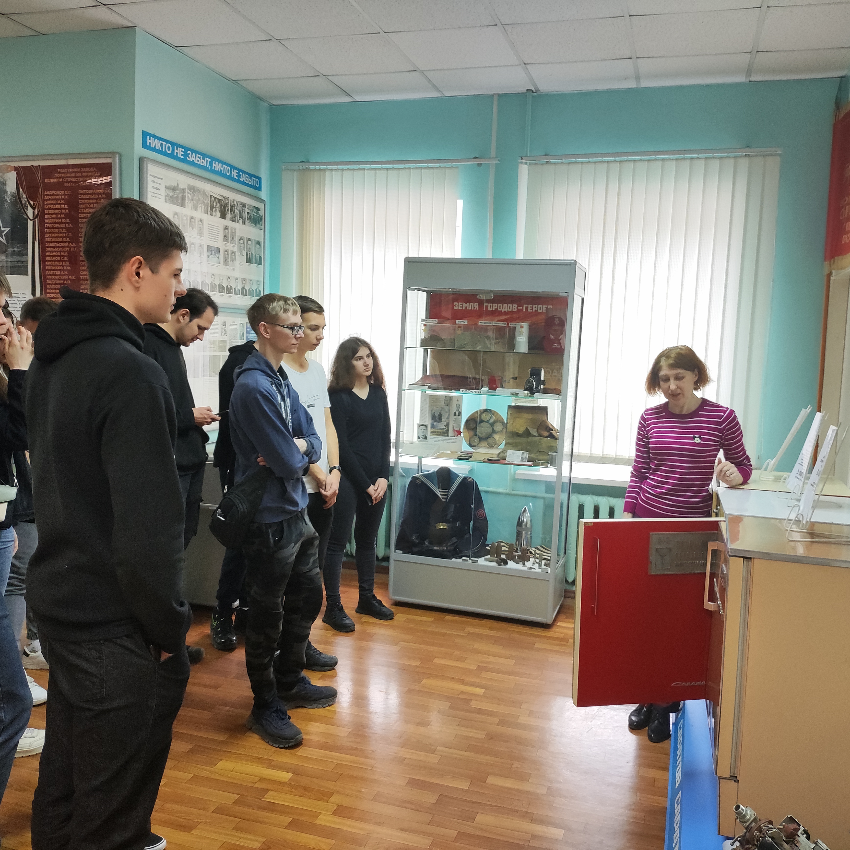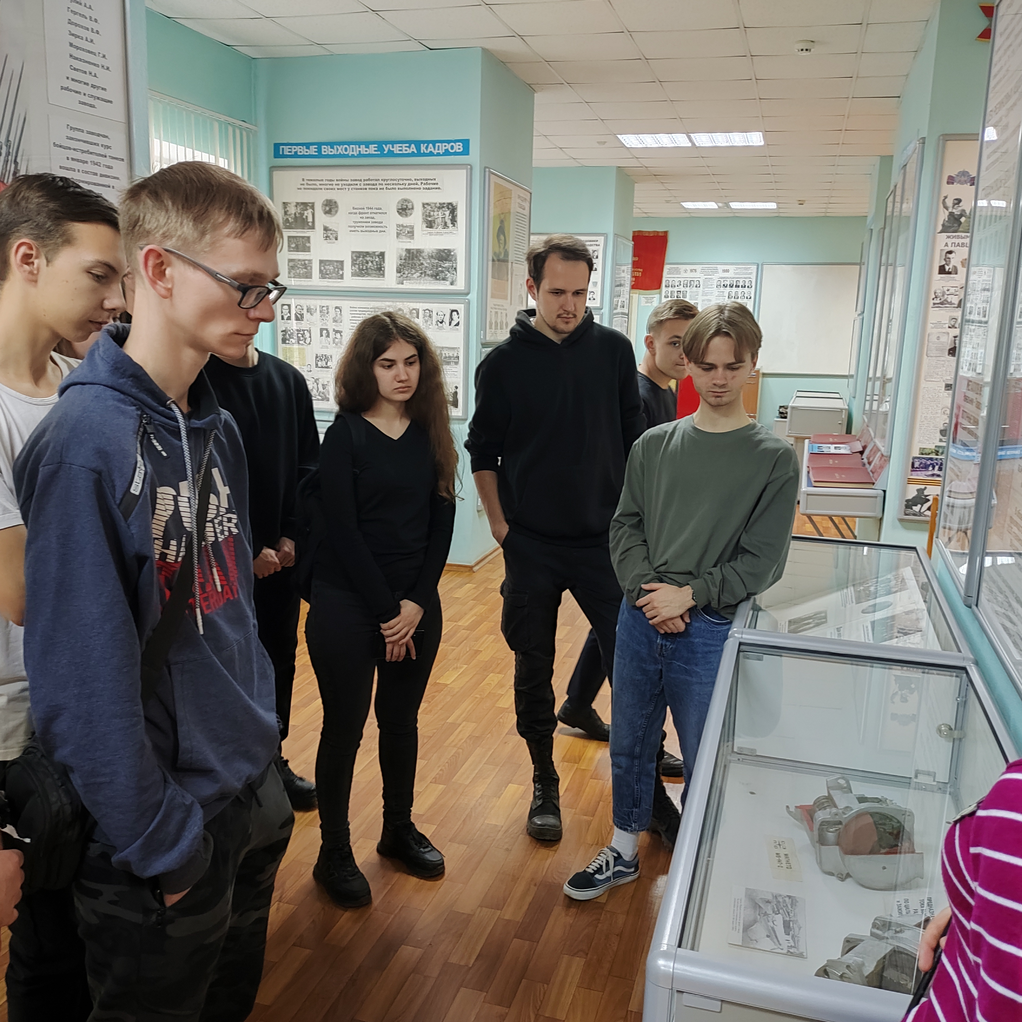Студенты посетили музей истории развития предприятия, в котором представлены ранее разрабатываемые уникальные образцы сложных электронных и электротехнических изделий для авиации, а также с историей развития производства бытовых холодильников.
