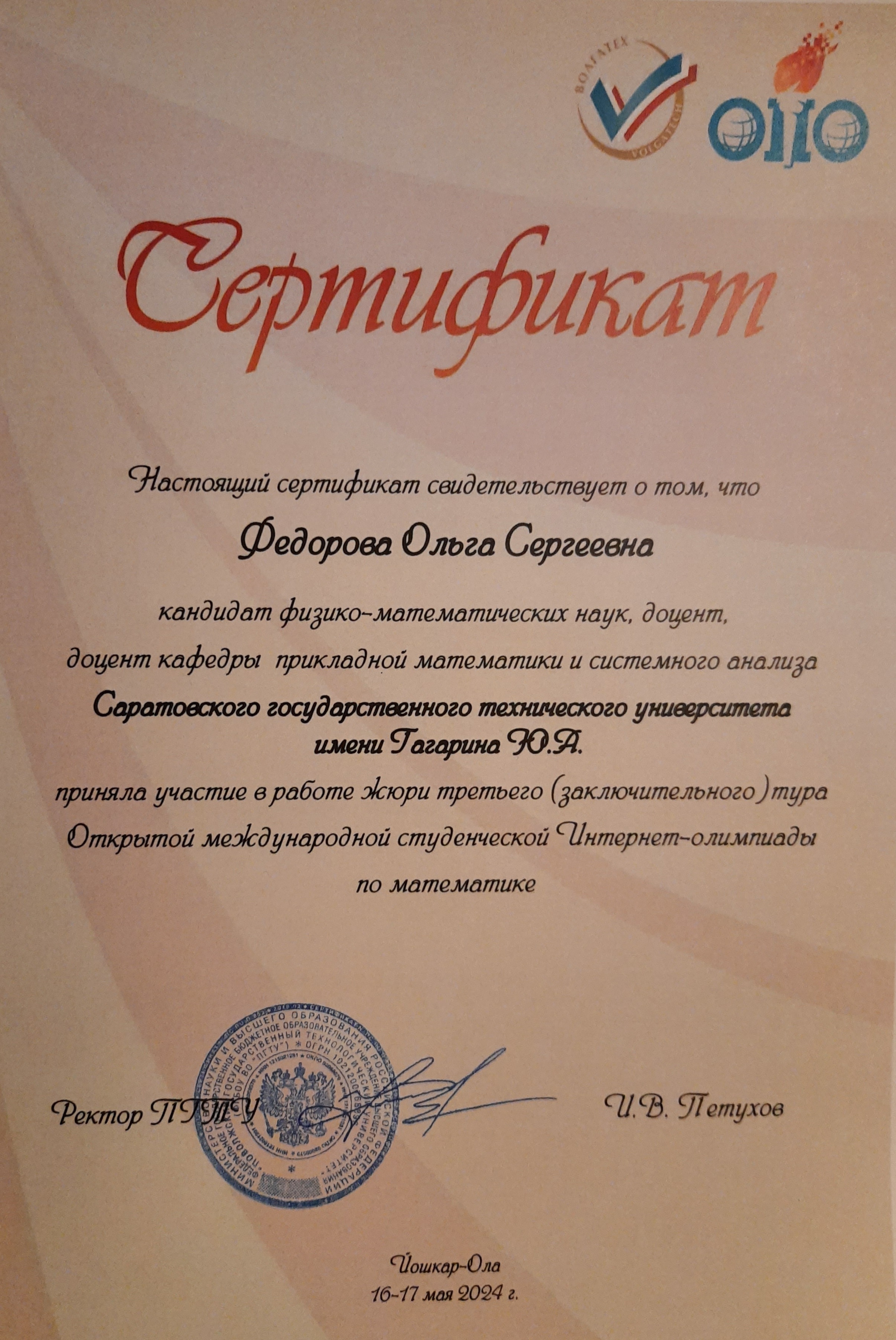 Олимпиада прошла в традиционной форме: студенты-участники оформляли решения задач в письменном виде, работы проверялись членами международного жюри, в состав которого вошла кандидат физико-математических наук, доцент кафедры «Прикладная математика и системный анализ» СГТУ Ольга Федорова. В работе Программного комитета и Оргкомитета олимпиады приняли участие более 30 ведущих ученых и педагогов РФ, а также стран ближнего зарубежья.