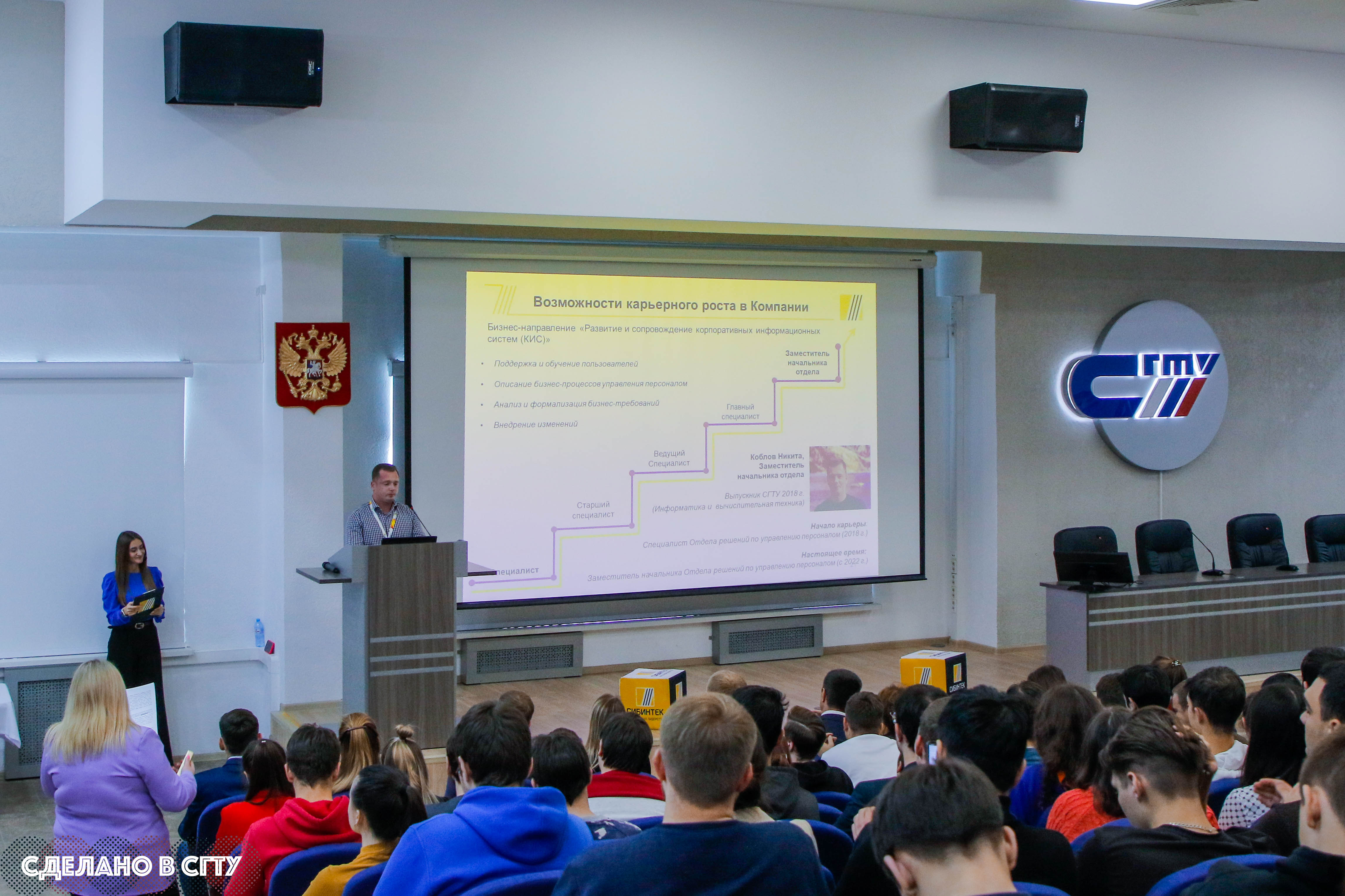 Вчера, 25 октября, в СГТУ имени Гагарина Ю.А. состоялась встреча студентов ИТ-направлений Института прикладных информационных технологий и коммуникаций и Института электронной техники и приборостроения с представителями филиала «Макрорегион ЦЕНТР» ООО ИК «СИБИНТЕК».