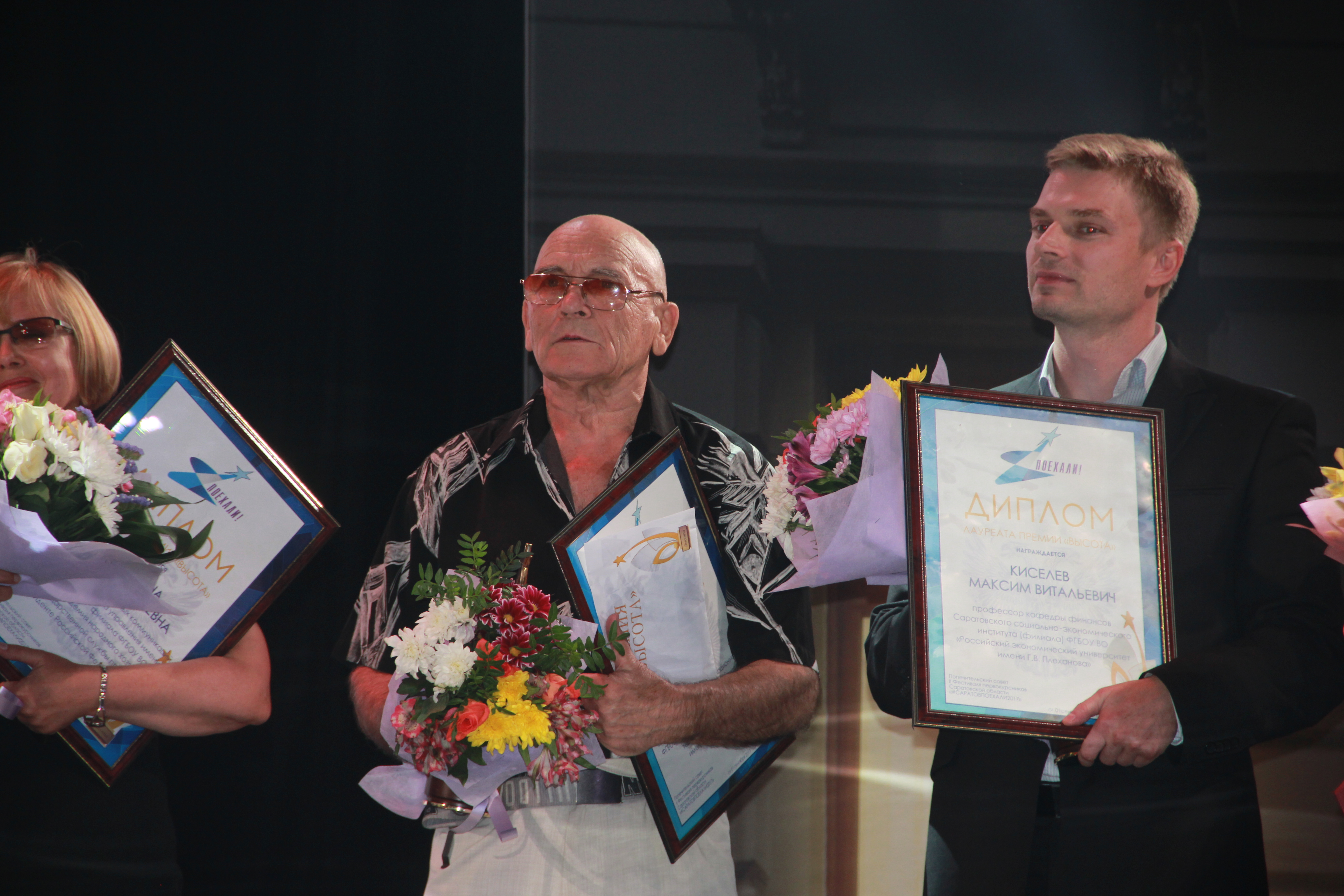 1 сентября на сцене Театра Юного зрителя имени Киселева Ю.П. двадцать четыре преподавателя из восьми саратовских вузов были награждены премией «Высота», присуждаемой лучшим педагогам системы высшего образования в регионе. Эта церемония прошла в рамках фестиваля первокурсников «Поехали!». Каждый из победителей получил диплом, памятную статуэтку и денежный приз в размере 100 тысяч рублей. Призы вручали заместитель председателя попечительского совета фестиваля первокурсников «Поехали!» Иван Лобанов, член попечительского совета фестиваля Татьяна Никонова и народный артист СССР Леонид Сметанников.