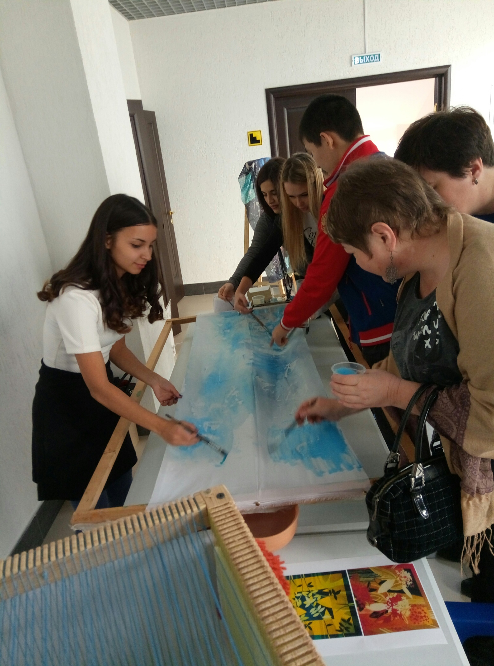 Красовская Дарья и Фадеева Юлия (б-ДИЗН21) под руководством преподавателя кафедры ДЦИ Финогеновой С.А. провели мастер-классы по технике художественной росписи ткани (горячий батик) и гобелену (ручное ткачество).