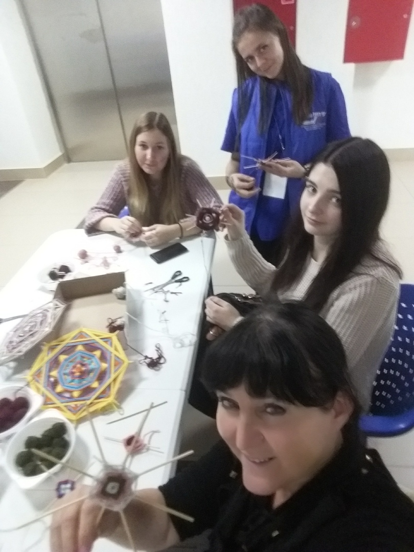 Константинова Елена (б2-ДИЗН31), Шувахина Яна и Щетинкина Полина (б1-ДИЗН31) провели мастер-класс по мандалам индейцев племени уичоли.