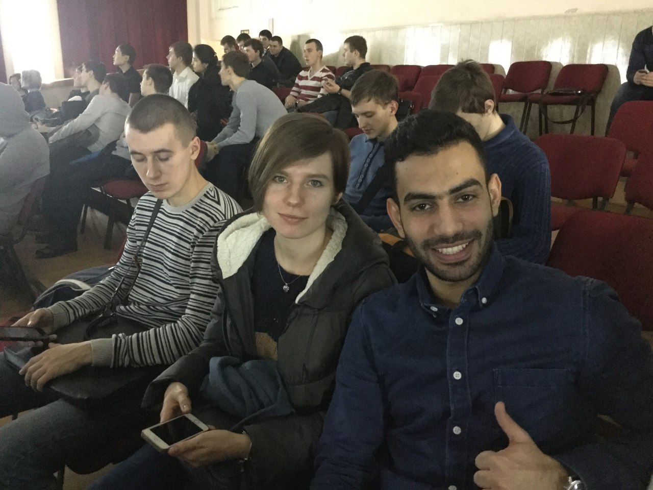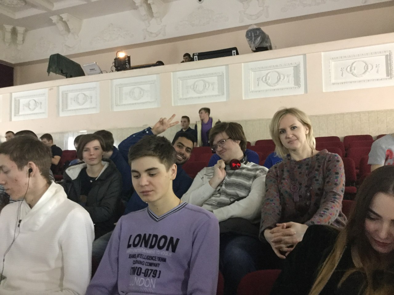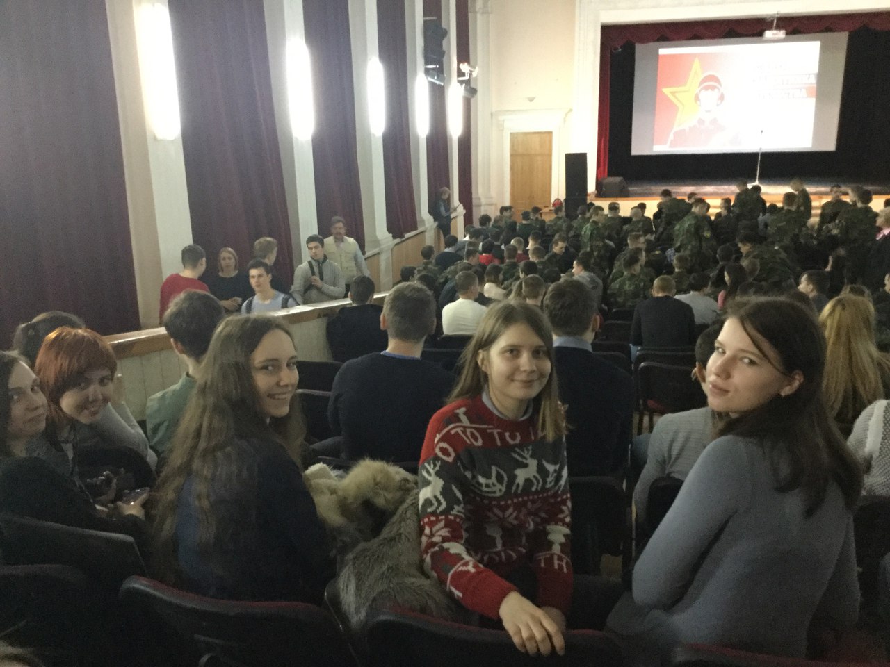 После этого группа вместе куратором Александровой Т.В. посетили концерт, посвященный Дню защитника Отечества. Перед концертной программой состоялась торжественная церемония передачи Вузу копии Знамени Победы.