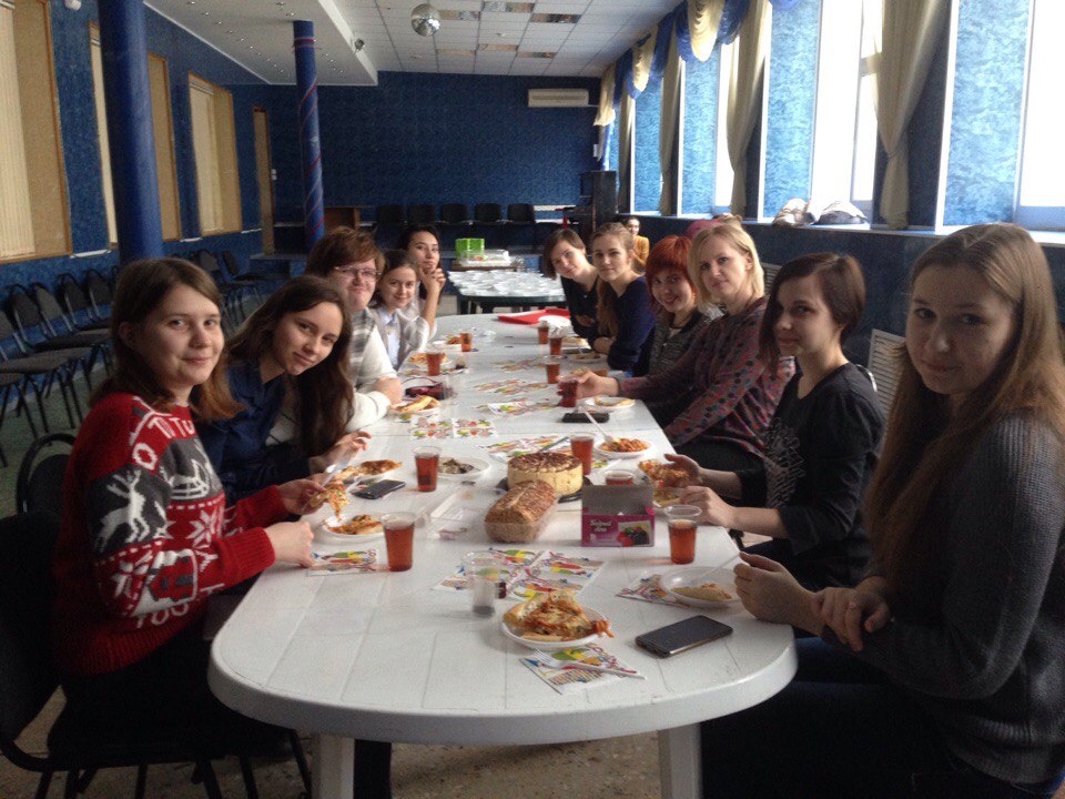 22 февраля состоялась очередная встреча группы б1-ДИЗН-11 в теплой дружественной атмосфере. Повод был замечательный – День защитника отечества. В зале столовой СГТУ студенты устроили чаепитие с тортиками, пиццей и «вкусными» историями из студенческой жизни.